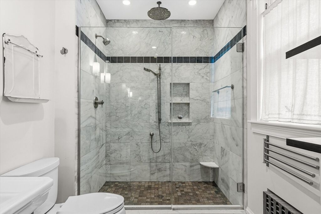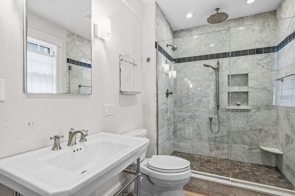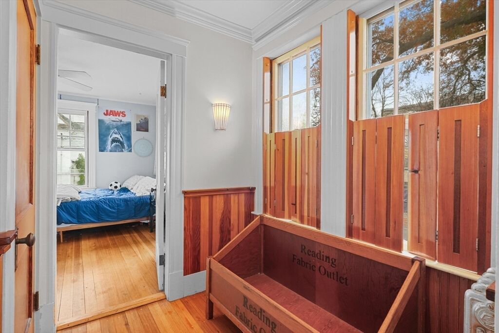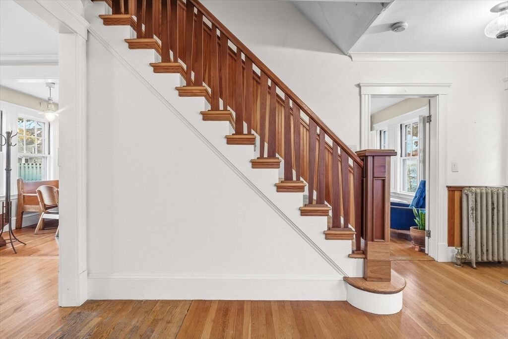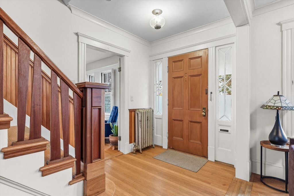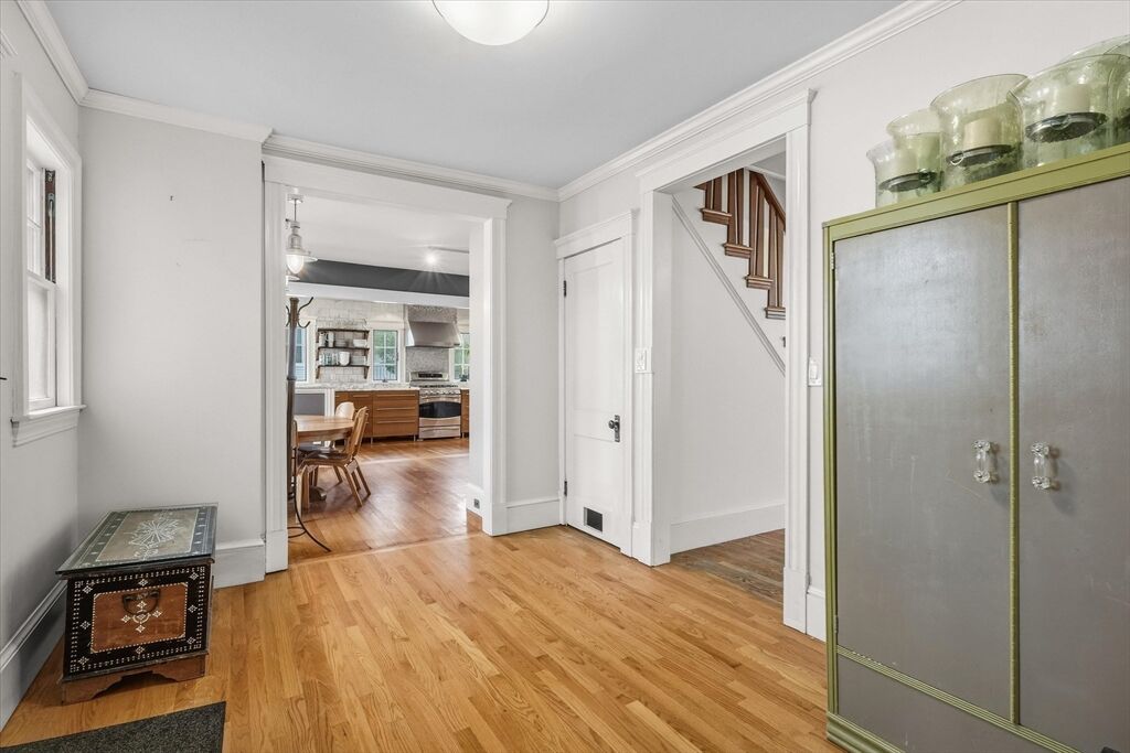 This classic Four Square Craftsman style Colonial combines period features and modern living into this beautiful residence. Welcome inside to discover timeless details such as decorative windows, a French door, elegant millwork, hardwood flooring & crown molding throughout providing an opportunity to own a classic home with all the modern comforts such as the updated beautiful spa like bathroom and gourmet custom-built, open kitchen with a gas fireplace. The inviting living, kitchen, dining, bath, mudroom & sunporch are located on the first floor and handcrafted stairway leading to the 2nd- featuring 4 bedrooms, full bath & walk-up attic offering a finished, heated bonus room or storage The basement also offers a finished bonus room. The exterior features a deck, patio & intimate fenced yard, 2 car garage & 2 car driveway parking. Ideally located in South Salem near the College and MBTA. Very close to beaches or Forest River/Bike trail. Peek at ocean views from the back of property
