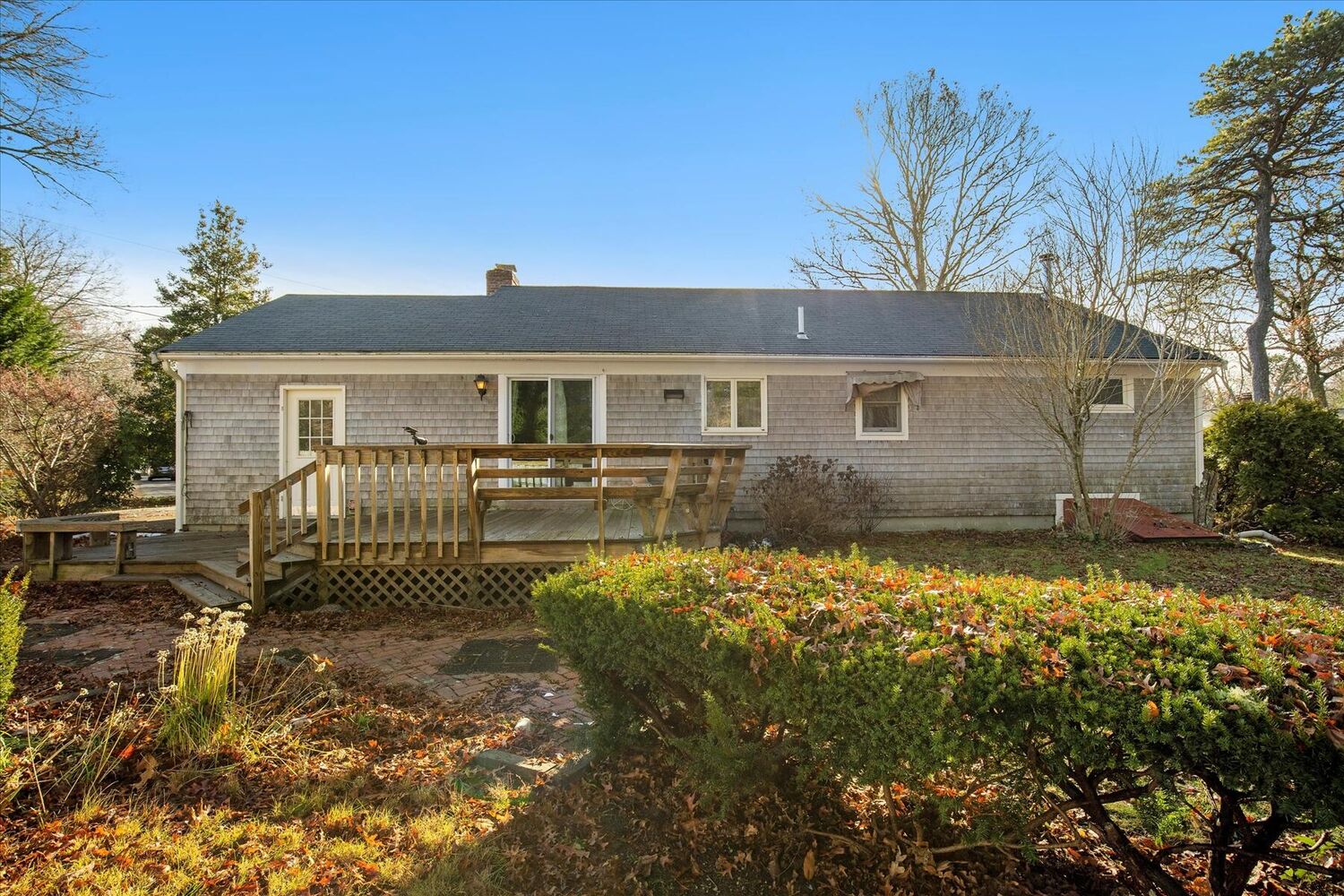 This ranch home with one-car attached garage is situated on a fenced corner in a neighborhood convenient to Routes 6, 132, and 28 plus all the amenities Hyannis has to offer. Three bedrooms and one full bath including tub and glass doors. The large living room has a wood-burning fireplace, bay window and carpet rimmed by hardwood parquet. Tidy kitchen has tile flooring with separate eating area leading through sliders to ample back deck, patio and garden areas. The finished, oversized family room features overhead lighting, easy-to-clean tile flooring and woodstove for possible supplemental heat. Separate from this spacious retreat is another room for exercise, office, etc., and has a built-in area for stereo components and wall-to-wall carpet. The laundry room which includes a washing machine and dryer also houses the gas furnace and new gas water heater. Great potential for a first-time buyer or downsizing. Imagine the possibilities and make it your own.