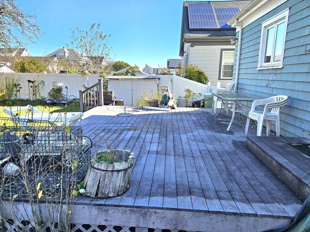 SOLID 1950's Cape in need of cosmetic updating throughout. Major items have been completed: Newer roof, furnace, updated electric, replacement windows and seller-owned solar. This home features a massive living room with fire place, original hardwood flooring, eat in kitchen, and generous bedroom sizes. The real potential is in the giant, unfinished attic with space for a main bedroom suite or even 2-3 extra bedrooms (check with the City). The yard is mostly fenced, features a large composite deck and off street parking! Will not pass all types of financing due to extensive exterior peeling paint.