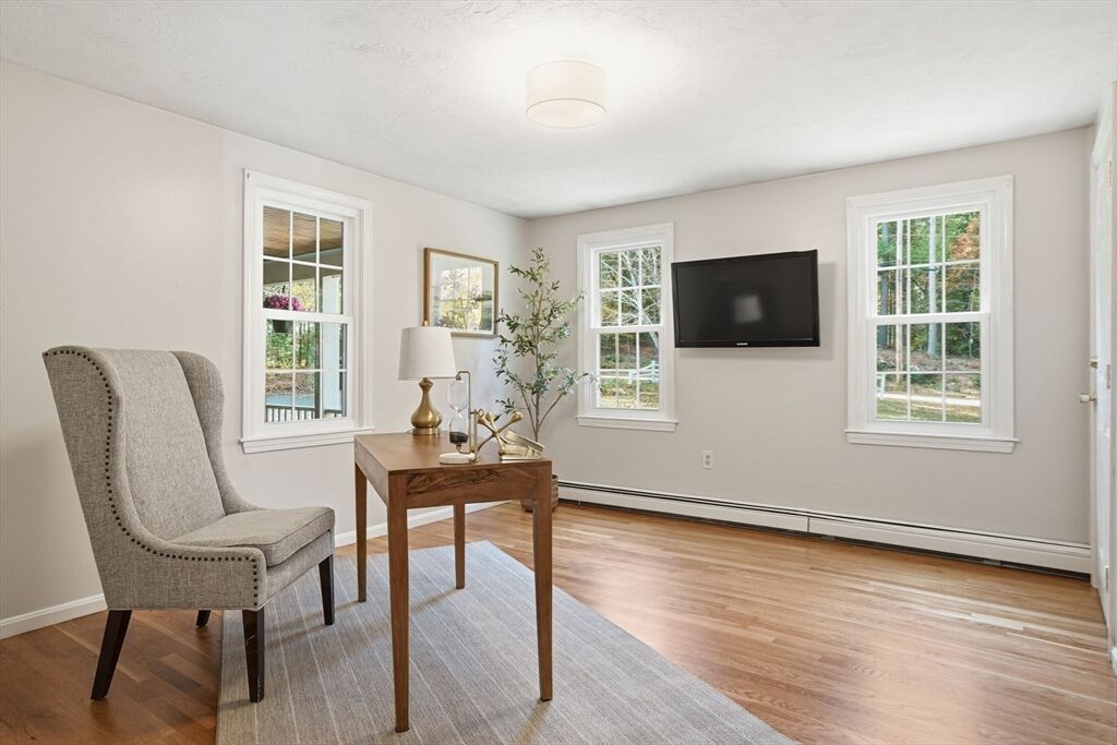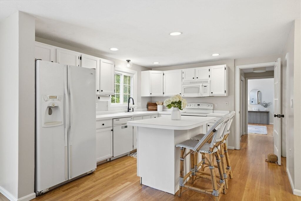 Expanded 4-bed, 2-bath Cape set back from the road on a picturesque, tree-lined street in Kingston. Nestled on nearly an acre of plush, level land surrounded by mature trees and beautiful plantings, this property offers your own private oasis—perfect for entertaining or relaxing around the firepit. Inside, gleaming hardwood floors flow throughout, highlighting the home’s warmth and character. The kitchen features a center island and inviting eat-in area, ideal for gatherings. A bright sunroom offers the perfect spot to enjoy backyard views in every season, while the welcoming front porch adds classic New England charm and a warm first impression. The two-car garage includes a versatile bonus room above, perfect for a bedroom or playroom, with additional potential to finish the basement. Located in one of the South Shore’s most desirable small towns, Kingston is known for its strong sense of community and convenient access to shopping, beaches, highway and commuter rail. Welcome home!