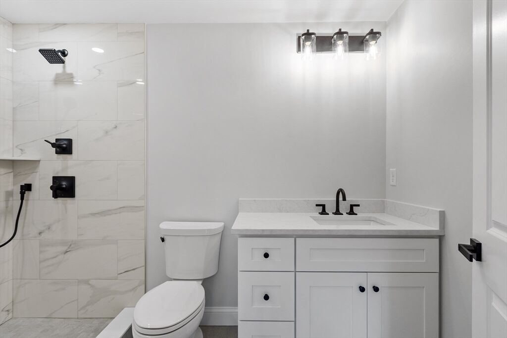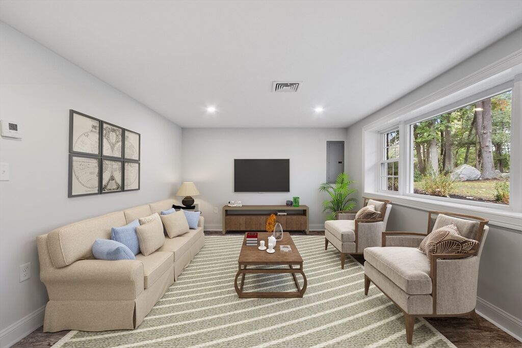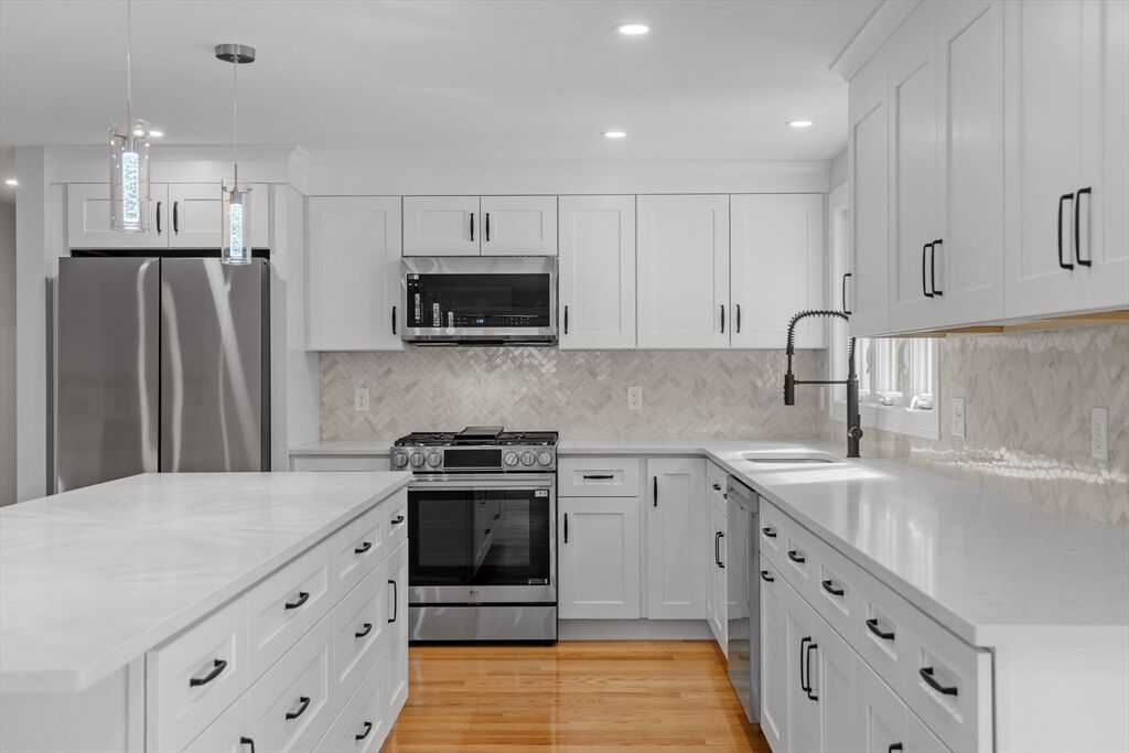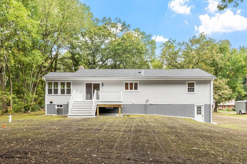 Discover this beautifully renovated raised ranch-style home, perfectly designed for modern living. This 3-bedroom, 3-bath residence sits on a spacious 1-acre lot & offers an open concept kitchen/dining/ living area that flows seamlessly into a sunlit sunroom. The gourmet quartz kitchen features a generous island, recessed lighting & stainless steel appliances, setting the stage for effortless entertaining. Hardwood floors span the first floor leading to a private main suite complete with a 3/4 bath & walk-in closet. A finished basement adds valuable living space, including a full bath, laundry, a welcoming living area, & an office space. Additional highlights include a 2-car garage, a large backyard with a deck, sprinkler system & professional landscaping. This home has undergone extensive updates, including a new septic, roof, siding, furnace/AC, & all interior finishes, ensuring peace of mind for years to come. Excellent commuter location with access to 93 and commuter rail.