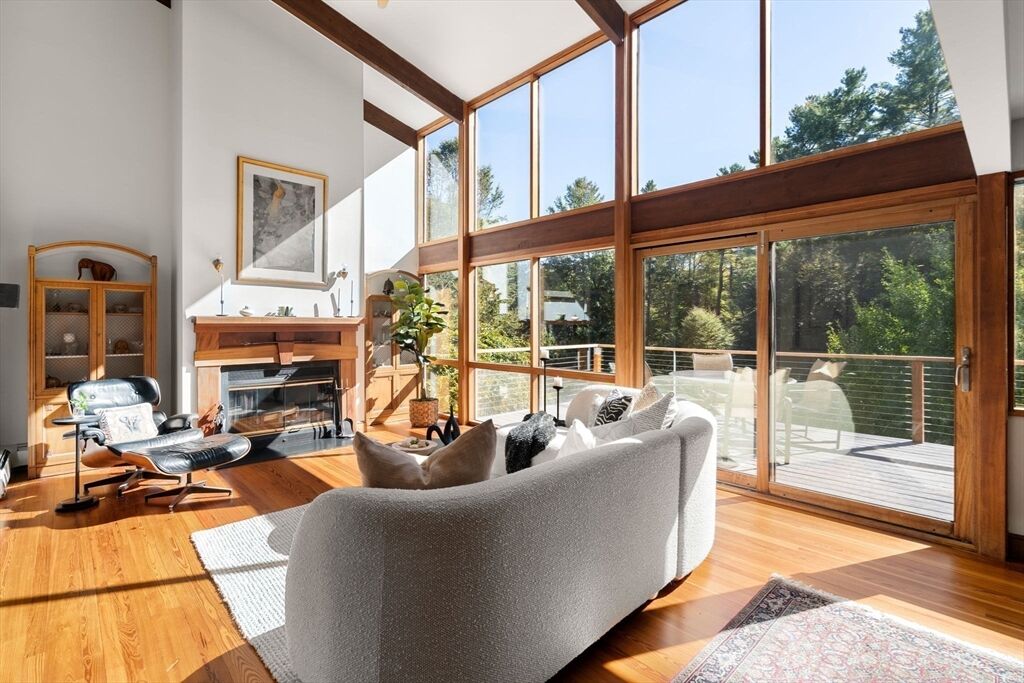 Set in a popular neighborhood this carefully crafted home offers a contemporary style and beautiful views from the private 3+ acres of land yet boasts a walk to all location. High ceilings, spacious rooms, open floor plan and walls of glass allow natural light to beam throughout. There are three finished floors of living space to accommodate multi generations. Move in ready this home recently went through extensive renovations offering a natural flow for entertaining or just enjoying with family and friends. Expanded kitchen with large island, dining room, family room with vaulted ceiling has access to the back deck. There is a guest room/office, full bath, laundry room, mudroom, heated garage complete first floor. Second floor hosts the spacious primary with loft and spa like bath, good sized additional bedrooms, custom library with builtins. The lower level has a rec room, full gym, guest bedroom, full bath and kitchenette, addtl egress and opens to a patio and manicured back yard