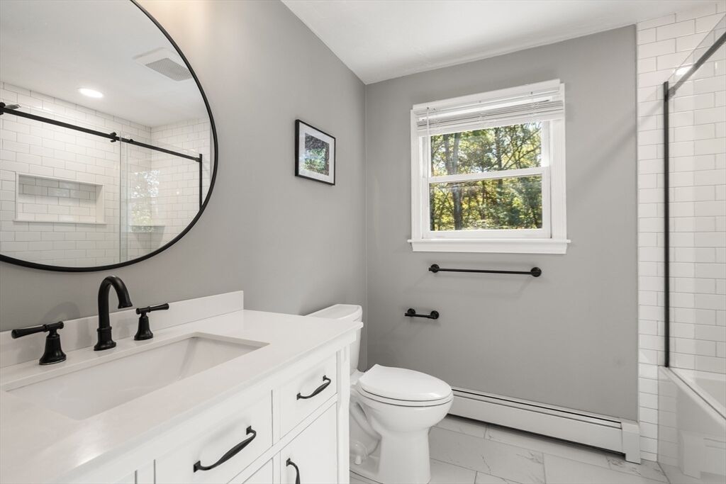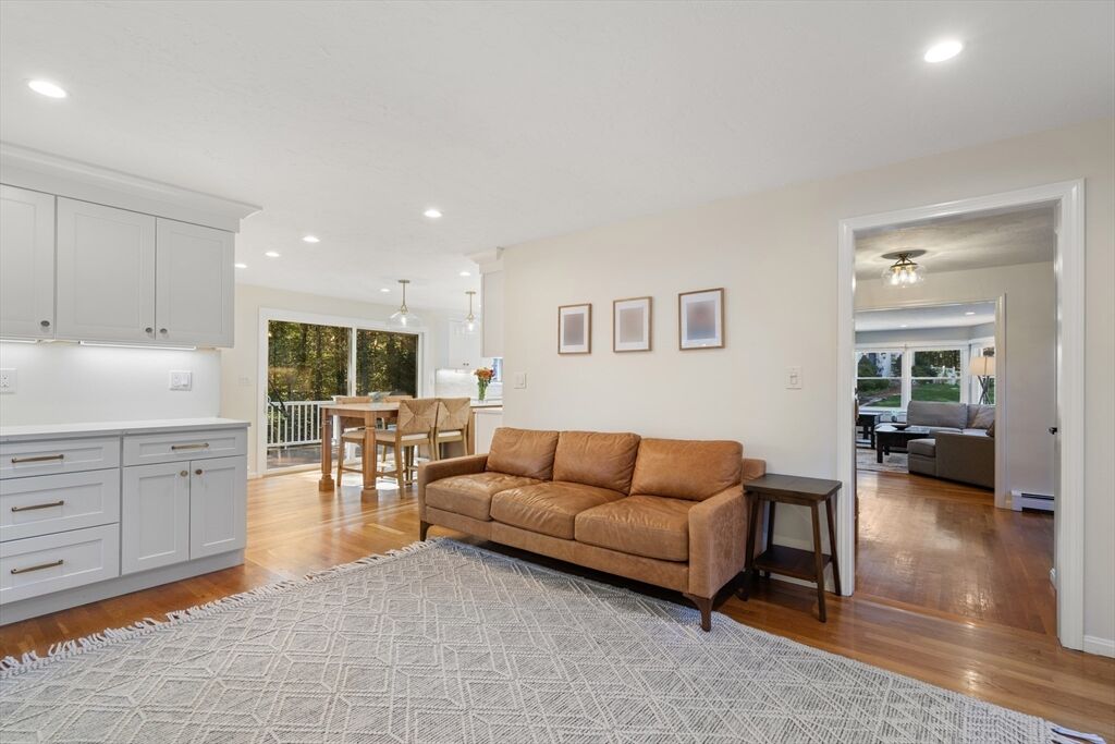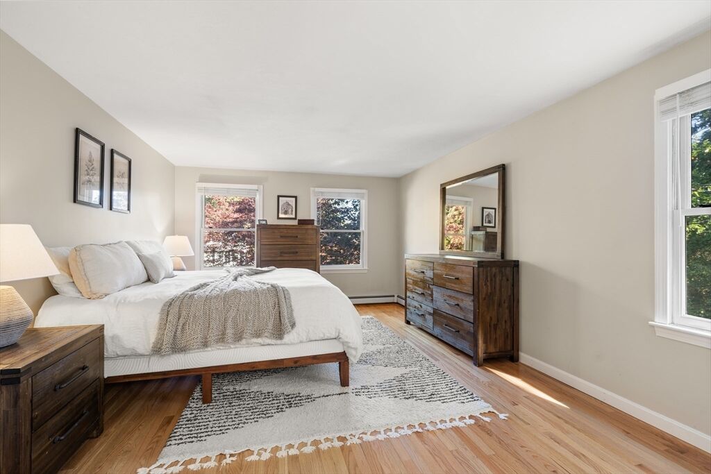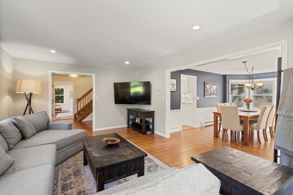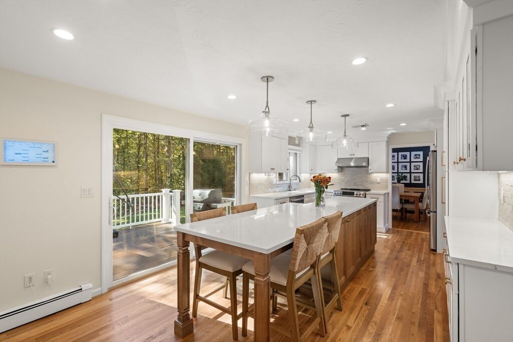 Welcome to this beautifully refreshed 4-bedroom, 2.5-bath home nestled on a quiet cul-de-sac in one of Walpole’s most desirable neighborhoods—just minutes to Boyden Elementary School, Gillette Stadium, shopping, and public transportation. Offering over 2,300 square feet of thoughtfully designed living space and hardwood floors throughout, this home is move-in ready with modern touches. Step inside to find a stunning kitchen featuring sleek finishes and ample space for cooking and entertaining. The bathrooms have also been tastefully upgraded, including a luxurious primary bath featuring heated floors. A bonus finished space in the basement offers flexibility for a home office, gym, or playroom. Outside, you’ll enjoy the brand-new deck overlooking a private, fenced-in backyard—ideal for relaxing or hosting guests. Don't miss this rare opportunity to own a move-in ready home in a peaceful setting with close proximity to shopping, dining, and all that the area has to offer.