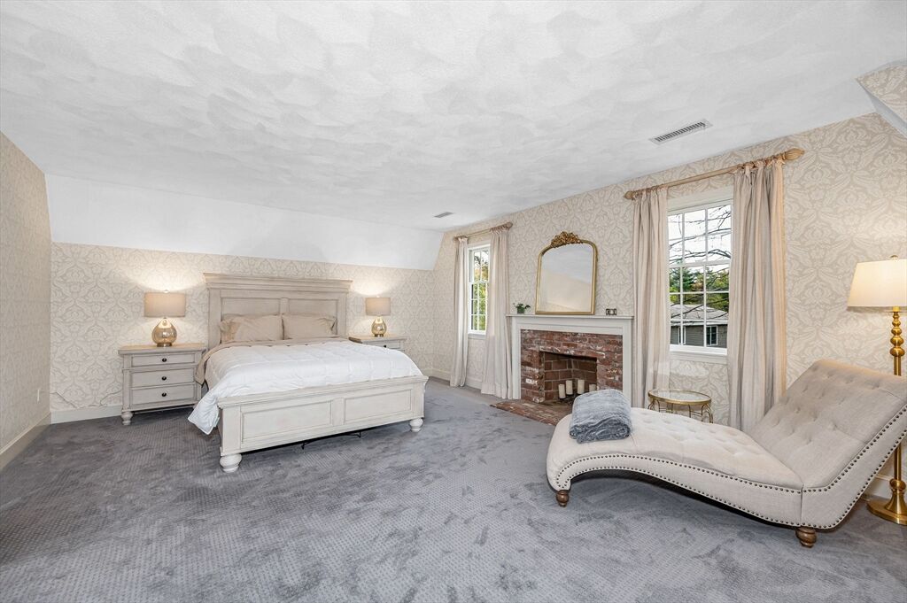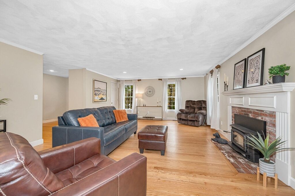 Byfield area of Newbury, tucked away in a private neighborhood yet convenient to schools is where you will find this lovely and meticulously maintained home. As you enter through the main entrance you will immediately feel the warmth of this home. The first floor offers a sunken living room with fireplace, formal dining a large kitchen with Cherry cabinets, granite countertop, tile backsplash, stainless steel appliances, breakfast peninsula and exit to oversized deck and private back yard, Also on the first floor is the laundry, half bath and a large family room with fireplace, hardwood floor and sliders to deck. The second floor is complete with the main bath and 4 large bedrooms including the primary with a fireplace, large walk in closet and private bath with double vanity, tile floor and tub with tiled shower. The basement is a perfect au pair, in-law or just great added space for the family with a full bath, home office and recreation room. Other features include, A/C & hardwood.