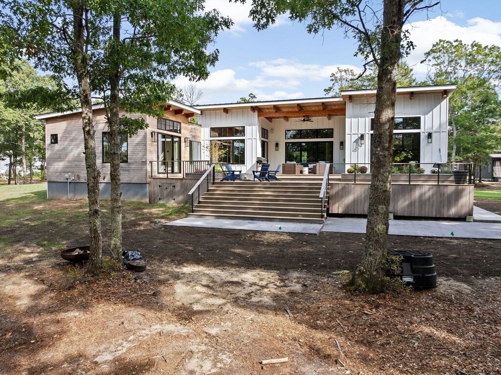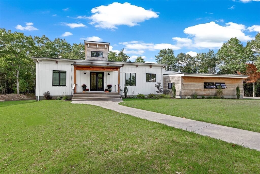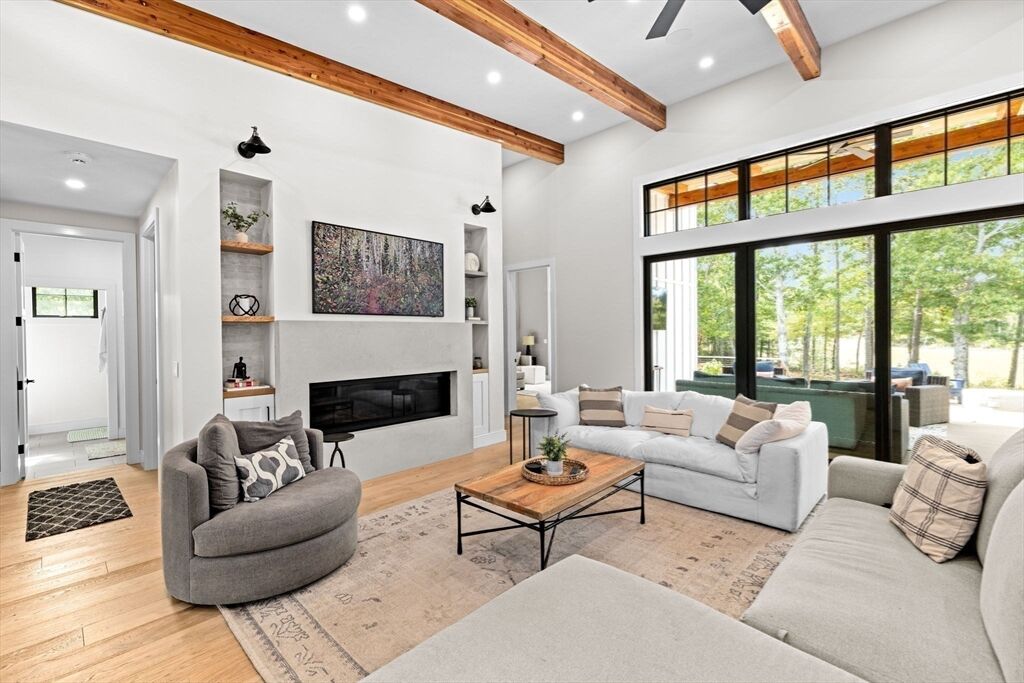 Step into timeless elegance reimagined through modern Scandinavian design. Nestled on two private acres with sweeping views of a cranberry bog, this newly built residence by TM Zell Development Design/Build combines natural beauty with masterful craftsmanship. Designed by a talented architect, the home features soaring ceilings with exposed beams, wide-plank oak flooring, and a sun-filled open layout with floor-to-ceiling windows. A chef’s kitchen with premium appliances and custom cabinetry anchors the main living space, while spa-inspired baths, a private gym, and flexible living areas offer comfort and sophistication. Outdoors, a spacious back deck provides the perfect backdrop for entertaining or simply soaking in the tranquility. From morning coffee to evening sunsets, this Scandinavian Farmhouse defines luxury living in harmony with nature.