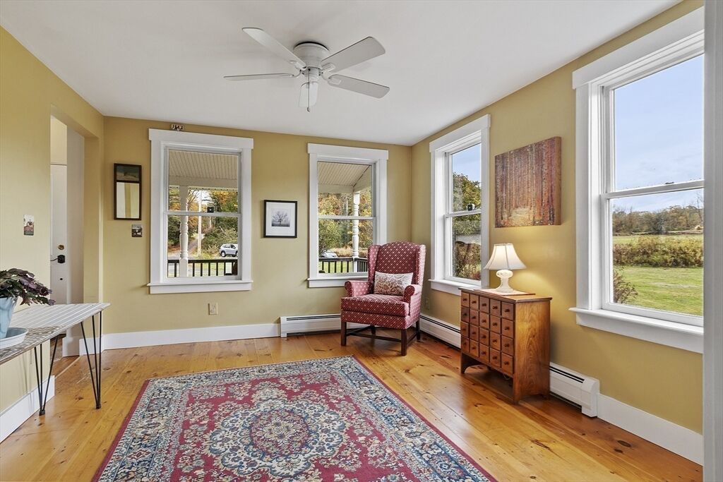 Royalston is a community with history everywhere. The population in 2025 of 1,265,in the 42.5 acres, means there is plenty of space! This splendid, refreshed, roomy Farm House will delight you with it's screened porches, friendly casual vibe and country views. Folks will love the openness, space, and window views. The kitchen is a place to be while the cook enjoys the professional stove, and cherry cabinetry. Folks will gather around the large island. Downstairs also has a living room, dining room, den, bedroom and half bath-laundry. Upstairs features two bedrooms and the huge bedroom with a Romeo+Juliette open deck! Sit here and watch special sunsets! Bonus is a new bathroom with a relaxing soaking tub and an enclosed shower. A plus is the Carriage House which includes a potting shed. The Farmhouse Property is 78 acres in Royalston and also adjacent 12 acres in Orange. The peace and quiet is amazing here!!