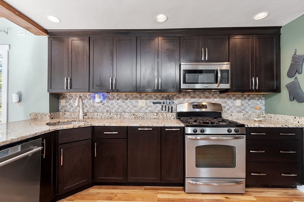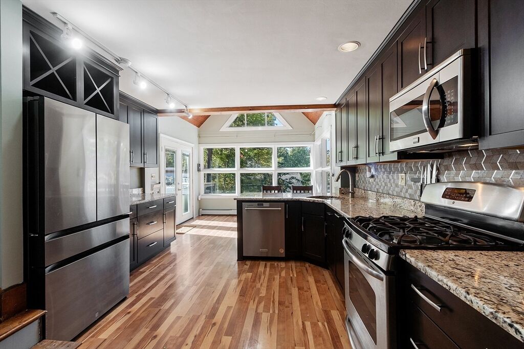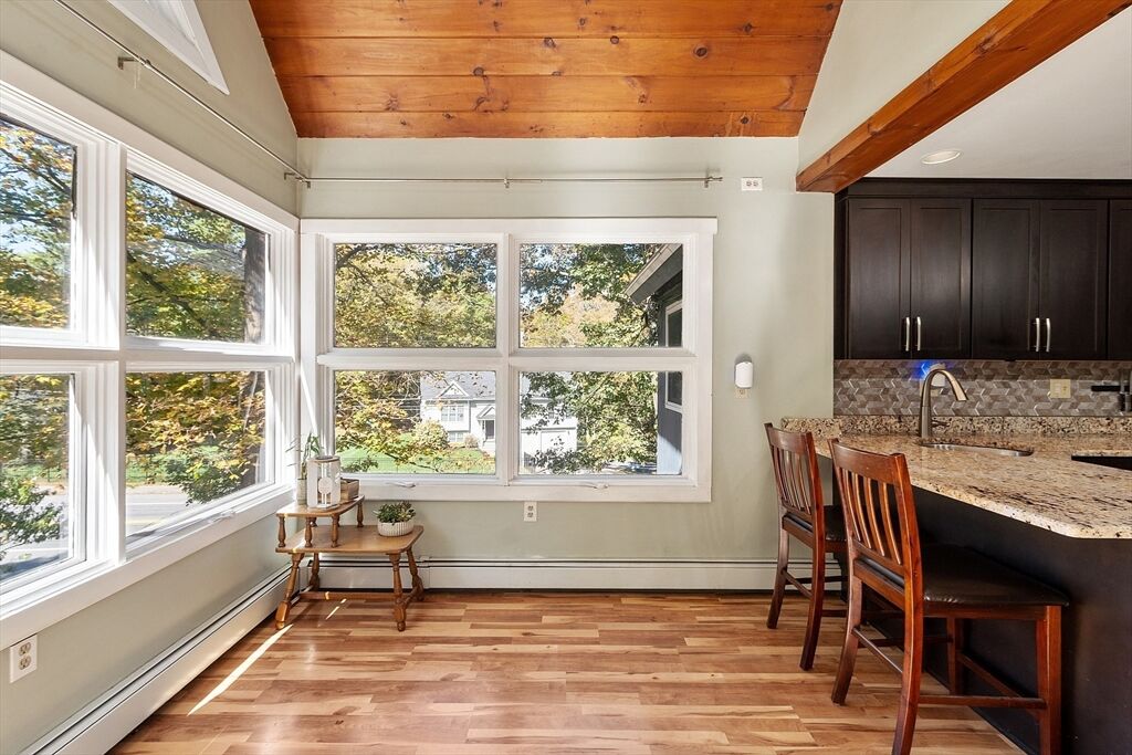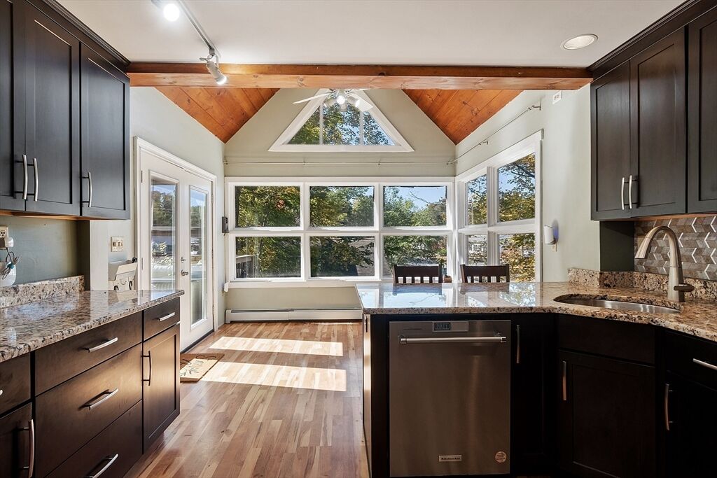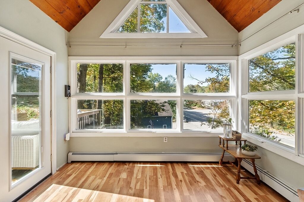 Don't miss this charming contemporary home full of style and character! Step inside this 3 bedroom, 2 bath contemporary and be welcomed into a dining room with a wall of windows that flood the space with natural light. The dining area is open to the large comfortable kitchen with plenty of room for cooking & entertaining. Around the corner are 2 bedrooms and a full bath. Up just a few stairs you will find the living room with soaring ceilings and another wall of windows bringing the outdoors in - making every corner bright and welcoming. This unique layout brings you up another level to the main bedroom suite with a private bath & balcony area perfect for your morning coffee. The lower level is partially finished with a family room & office for extra space. Located near the center of town, you'll love the convenience of being close to local favorites like Rota Spring Ice Cream, Davis Farm, Meadowbrook Orchards and the town beach. Easy highway access makes commuting from here a breeze.