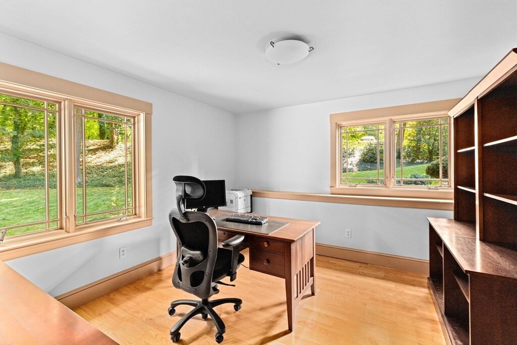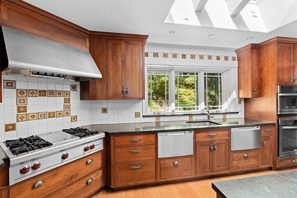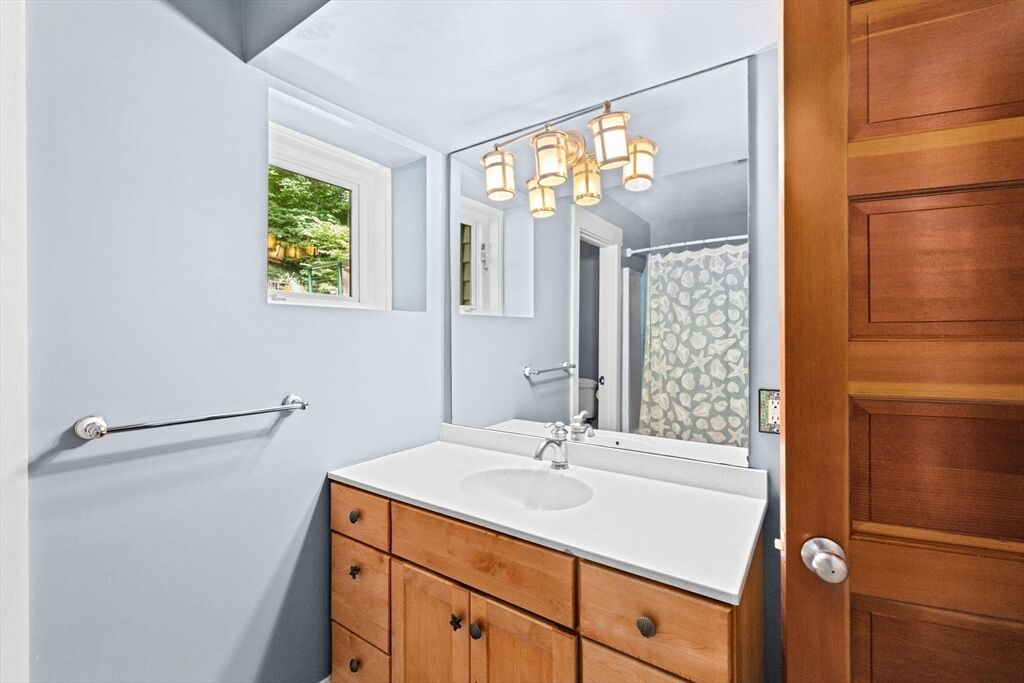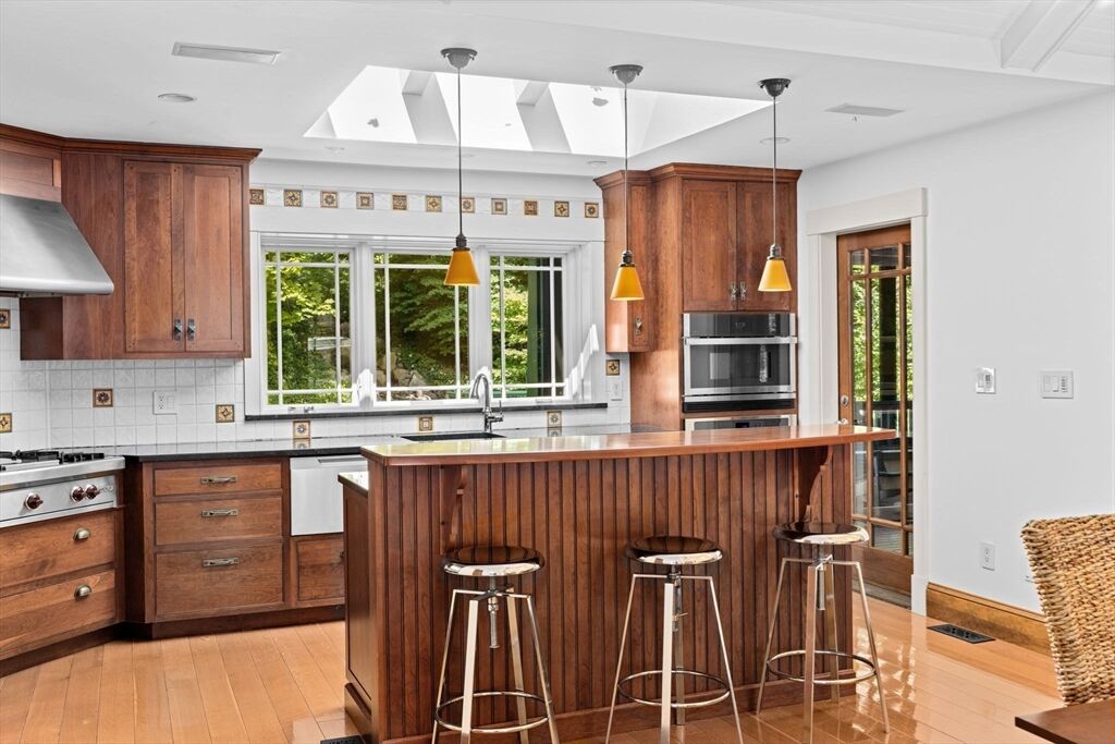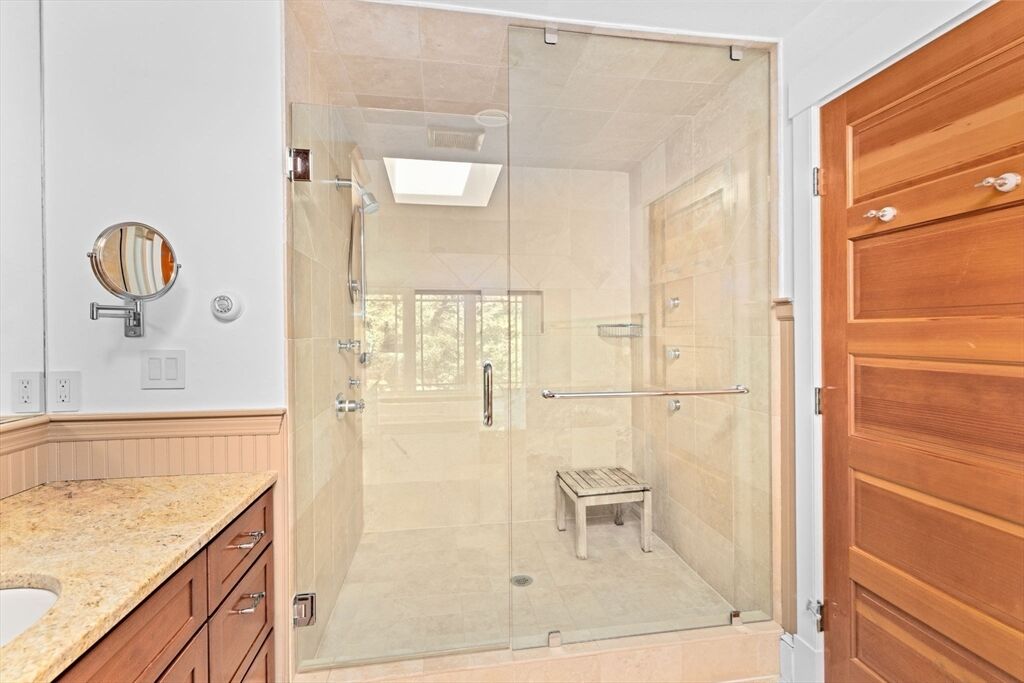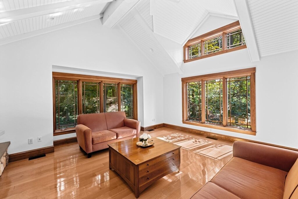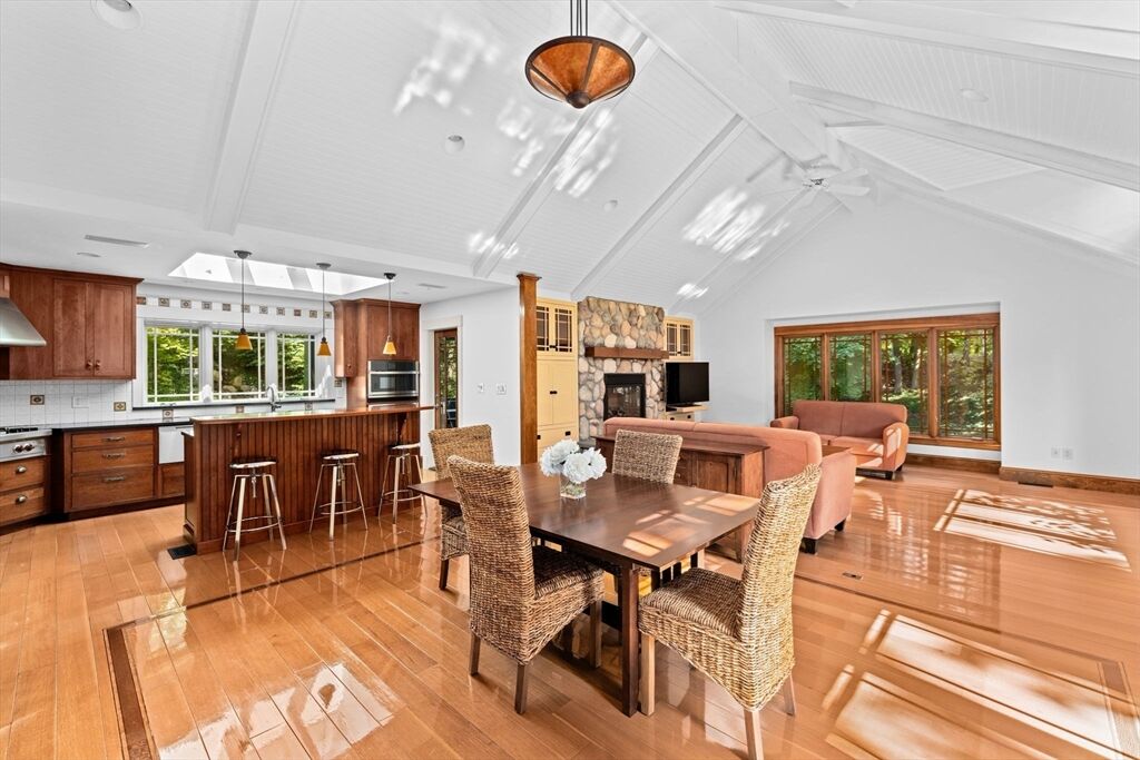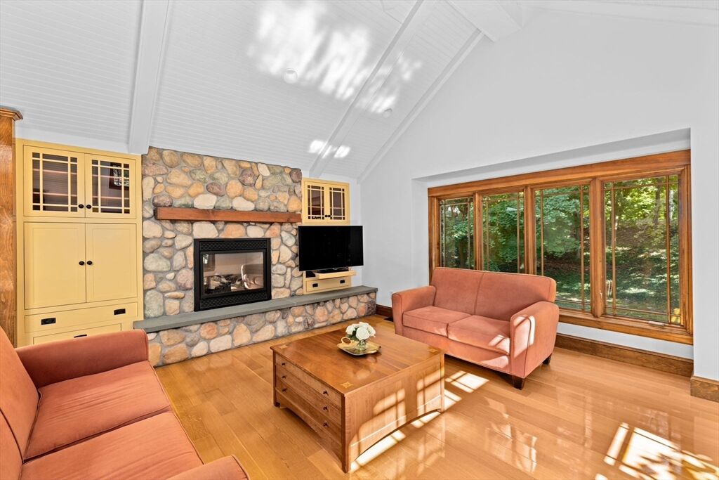 Nestled on an enclave of 4 homes in a sought after location between Cohasset Village and Sandy Beach, this lovely four-bedroom home combines Vermont-like charm with the ease of one story coastal living. The open floor plan features a chef’s kitchen with walk-in pantry, a dining area, and a sunlit living room with soaring ceilings and a dramatic stone fireplace. The first-floor primary suite includes a spacious walk-in closet and full bath, while a second bedroom and bath open directly to the backyard. The walk-out lower level offers two additional bedrooms, a full bath, and a flexible living space. A screened-in porch with a gas fireplace overlooks the tranquil backyard, complete with a deck, waterfall feature, and a large side yard. With a one-car garage and an sought after location close to the village, beaches, and commuter rail to Boston, this home is a serene retreat in the heart of Cohasset.