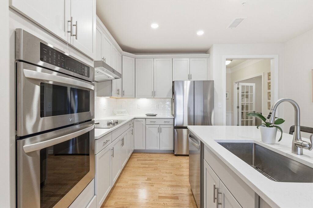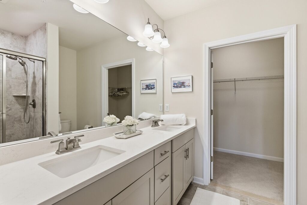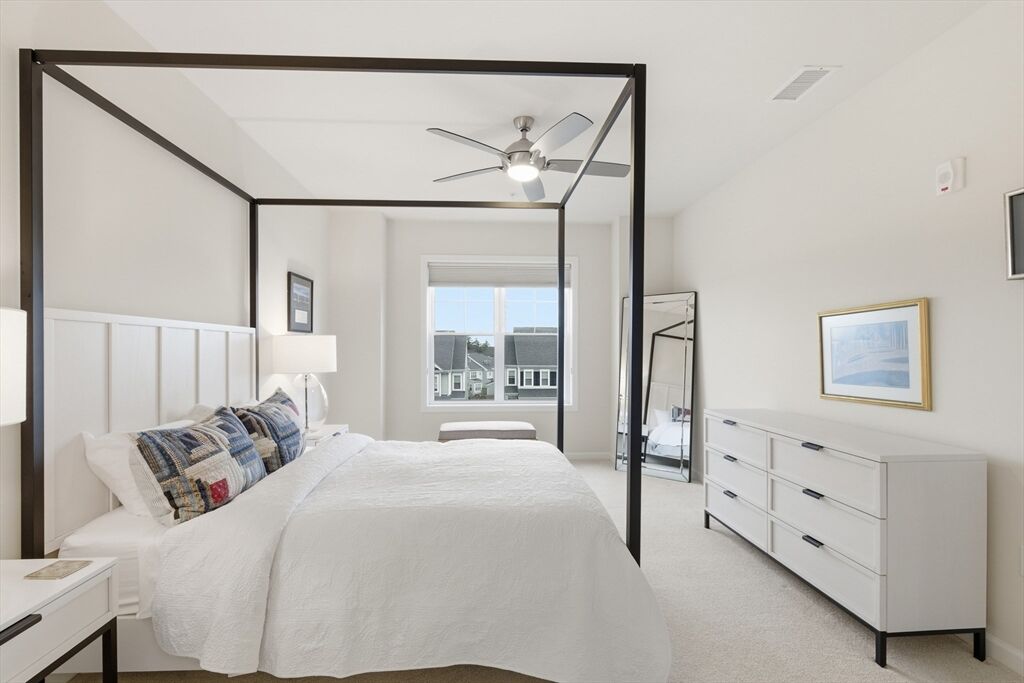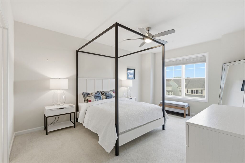 This nearly new condo, just three years young, offers a bright, open-concept layout with modern finishes. The kitchen features stainless steel appliances and a spacious island with seating for 2+. Enjoy 3rd-floor convenience with slider leading to an exterior deck —perfect for relaxing outdoors. A separate laundry room adds even more convenience. The primary suite boasts a large room with ensuite and an oversized walk-in closet, while a generous second bedroom is thoughtfully positioned off the living area. A bonus flex space provides an ideal home office or den. High ceilings and walls of windows fill the home with natural light, creating a welcoming and airy atmosphere. Residents enjoy a wealth of amenities, including a beautifully appointed clubhouse, fitness center, outdoor grills, and a full kitchen for entertaining. Additional features include EV charging, ample parking, an elevator, deeded garage spot. Ideally located near the Concord line, the Rail Trail and Verill farm.