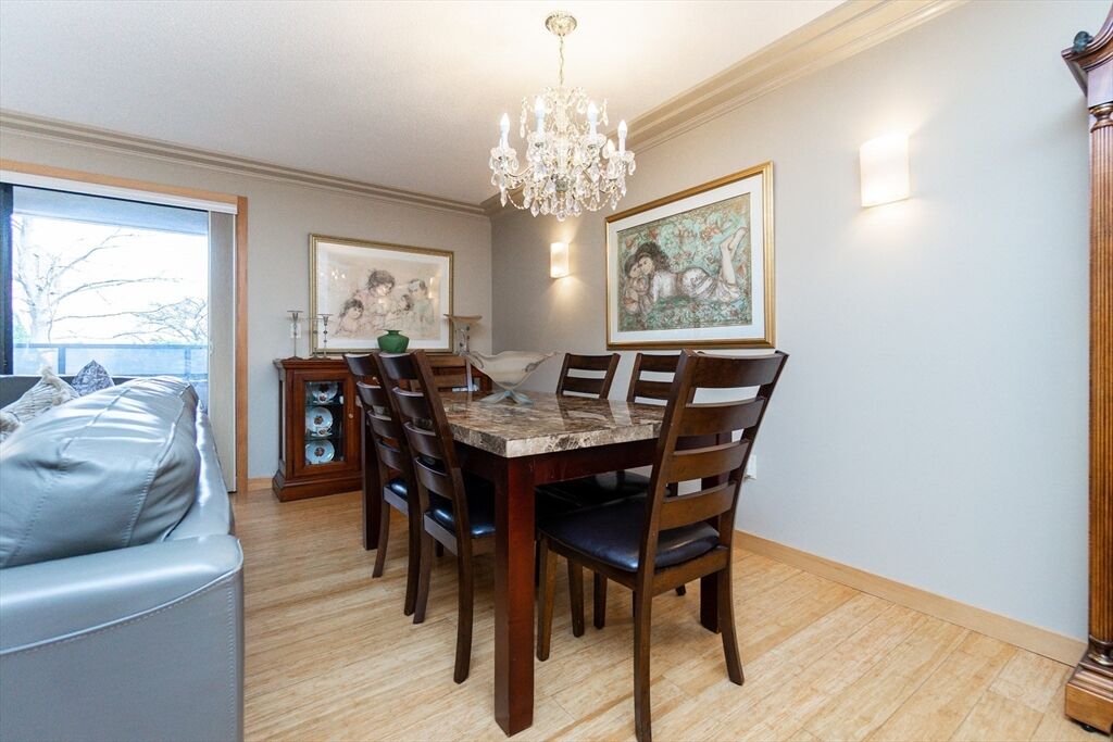 Style, comfort and convenience abound in this lovely 2 bed, 2 full bath condominium. On entering, the atmosphere of taste and luxury is obvious in the wood floors, crown moldings, custom wood doors, custom blinds and fresh paint. The updated, open kitchen boasts a huge peninsula, SS appliances and wine fridge. Both baths are remodeled with walk in glass showers and luxury finishes. The elevator from your garage space goes right to your floor. Enjoy the seasons from your private, covered outdoor deck. The carefree lifestyle continues with a new HVAC system, in-unit washer/dryer and interior mail and package delivery! Crown Pointe is unique in condo amenities. The condo fee covers all utilities and maintenance. Resort style features like indoor & outdoor pool, tennis & pickleball , and beautifully appointed clubhouse with fitness room, entertaining space and on-site management are included. Location is ideal in the heart of Vinnin Sq. close to shops, restaurants and transportation.