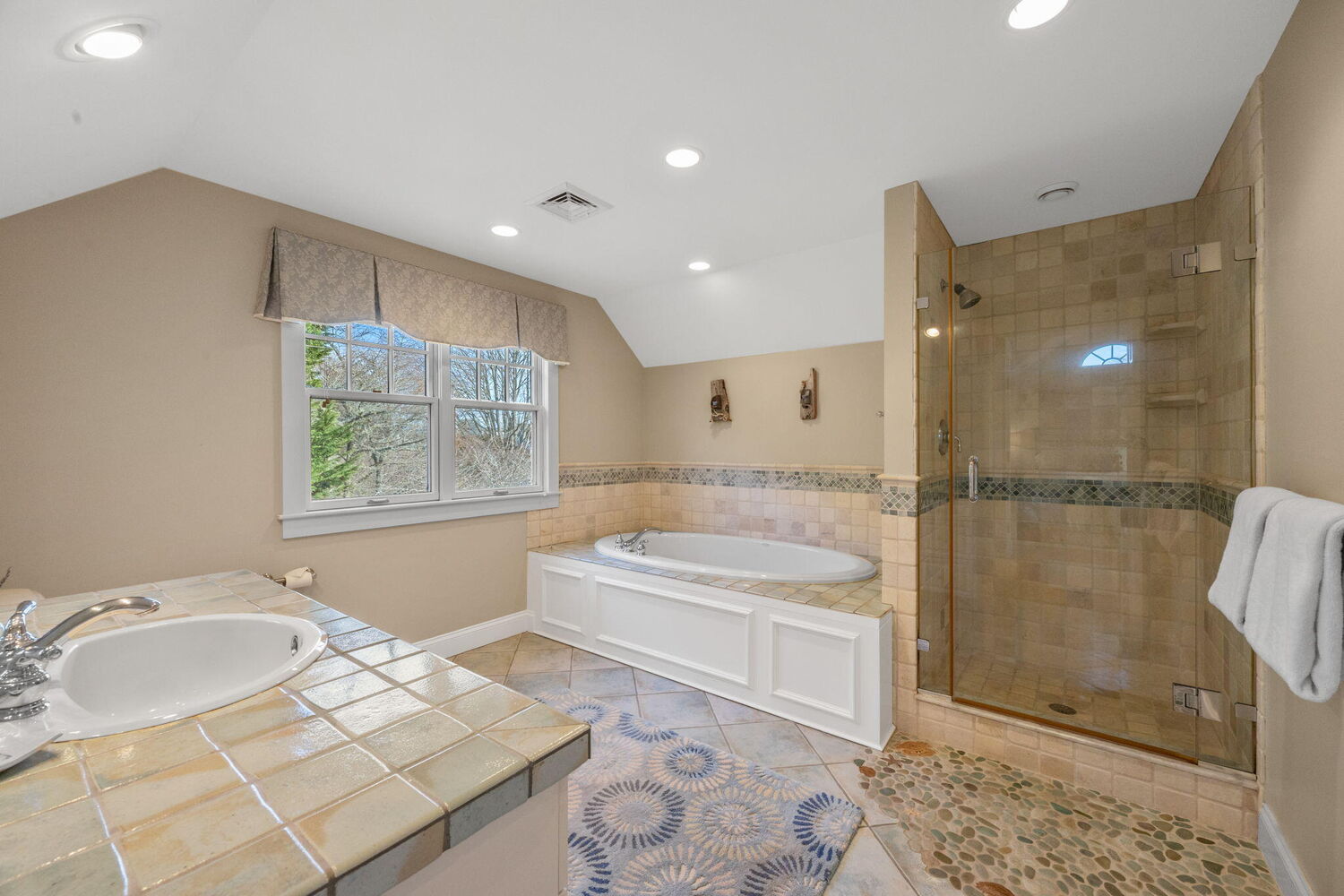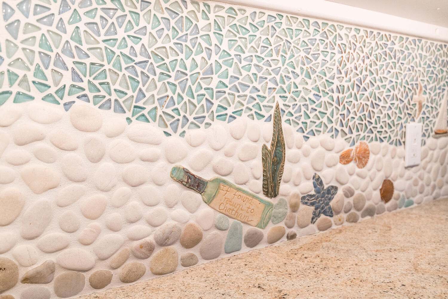 This stunning cedar-shingled, four-bedroom residence is just a short stroll from beautiful Chatham Village, Oyster Pond, and Stage Harbor. The home features many custom updates, numerous amenities, and fine details throughout. Custom tile work and high-end finishes create a luxurious atmosphere. The cozy interior exudes a beach cottage ambiance, highlighted by a great room equipped with a gas fireplace, a coffered ceiling, a wine fridge, and pegged hardwood floors. A sliding glass door off the great room leads to a private deck and patio, as well as a professionally landscaped yard with stunning stone walls. The custom kitchen includes a gas range, granite countertops, custom tile work, custom cabinetry, and a spacious kitchen island, making it a chef's dream. On the first floor, there is a bedroom with an adjoining full bath. The second level features a superb primary suite with a cathedral ceiling and another gas fireplace. The luxurious full bath boasts a jetted tub and more custom tile work. Adjacent to the primary suite is a balcony that offers distant views of Nantucket Sound. This floor also includes two additional bedrooms adorned with custom murals, along with a full bath. The finished basement adds even more living space, accented with custom murals and comprising three separate rooms, plus a half bath. Enjoy being close to town while living in a neighborhood of fine homes. A custom-designed paver driveway leads to an oversized one-car garage. The lawn features an irrigation system, and there's ample room for a pool.