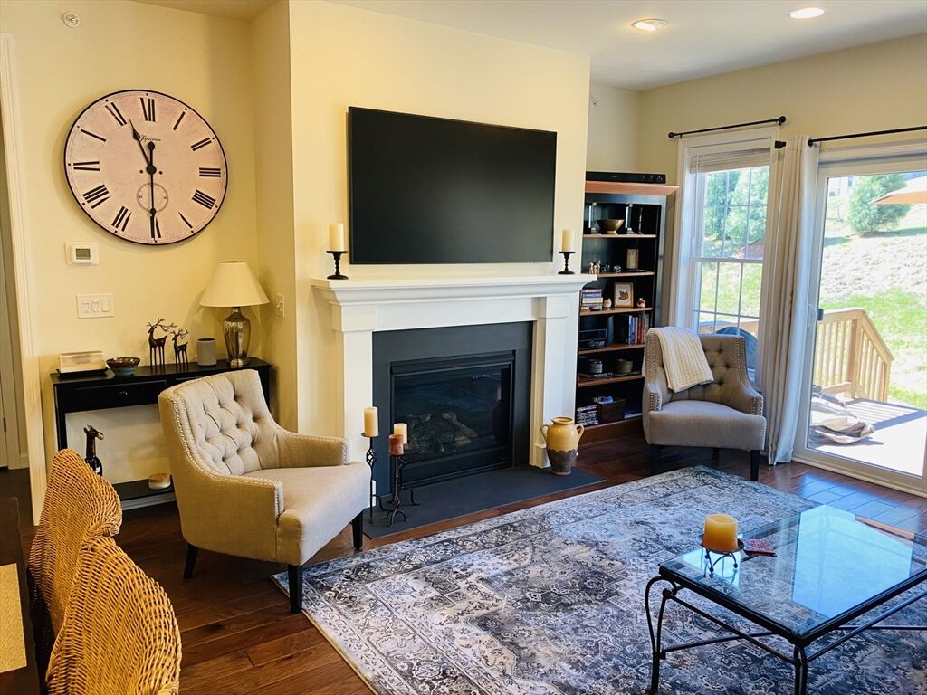 Work related transfer requires sellers to leave this carefully upgraded townhome they love. This home is loaded with extras including a cozy gas fireplace, granite countertops and hardwood floors throughout the first level. The Tuscan floor plan features 2+ bedrooms, a second floor lofted family room, and den/office space. The spacious first floor primary suite offers large walk-in shower, double sink vanity, and roomy walk-in closet. Laundry room is set just off the primary. Half bath located off front hallway. Second floor opens to a bright and sunny family room with custom built-ins, guest bedroom, full bath, extra large storage room and spacious walk-in closet. There is ample storage including a large unfinished basement. Relax and bask in the sun on the front porch with your morning coffee or on the back deck with afternoon sunshine. Enjoy nearby golf with 18 hole and par 3 courses, a great restaurant, and local hiking trails. Upton Ridge is an Active 55+ living community.