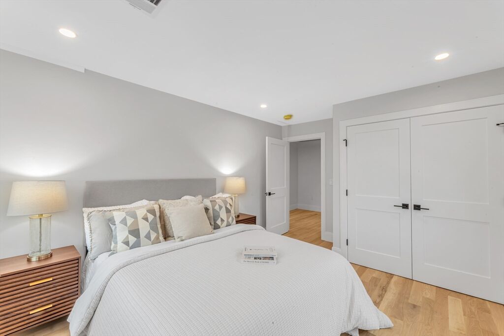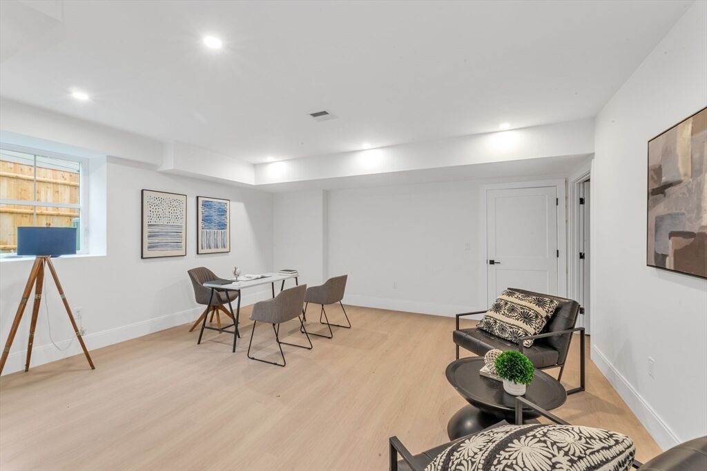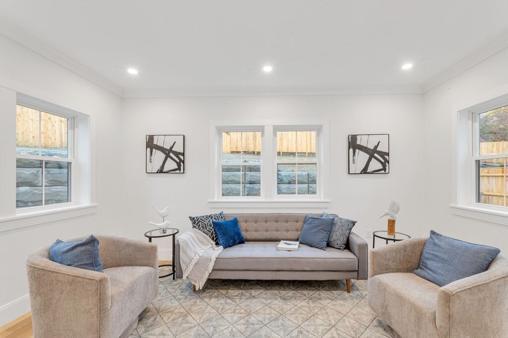A rare new construction home in Roslindale, meticulously crafted by a local luxury builder and thoughtfully designed by *Kerry Driscoll Design* . This stunning residence showcases 3 levels of living boasting a bright, open design plan with upgraded wide-plank white oak flooring throughout, a designer kitchen with custom cabinetry, bar area w/bev cooler, gas fp lv room with marble mantle and built-ins and a sunroom that seamlessly extends to a outdoor patio complete with a gas line for grilling, perfect for entertaining.The upper level offers 4 bedrooms including a serene primary suite featuring a spa-inspired bath with solid stone flooring and shower, stylish fixtures and a massive walk-in closet, laundry room and full bath with tub wrapped in porcelain tile. The lower level provides a two-car garage with an attached flex space ie. gym/office, blending convenience with modern living. Every detail has been elevated, from the high-end finishes to the carefully curated design elements.