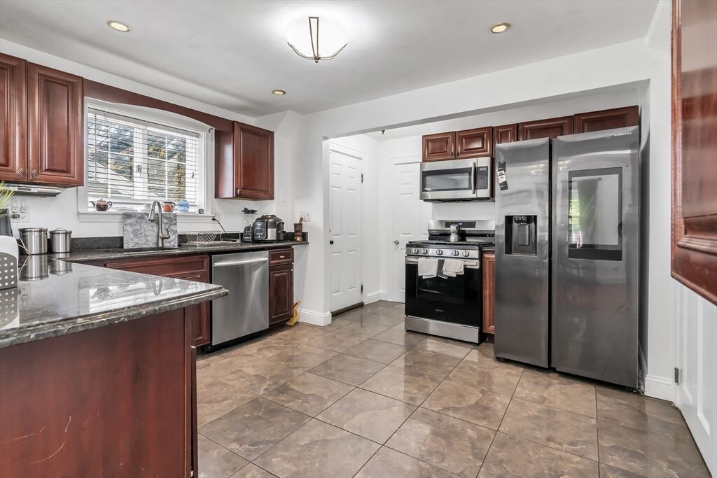 Welcome home to this charming Cape nestled in a sought-after neighborhood where comfort and convenience meet. This inviting home offers a warm, welcoming atmosphere perfect for making memories. The spacious fireplaced living room is ideal for cozy nights or family gatherings, while the bright kitchen opens to a dining area that makes every meal special. Kitchen boasts granite countertops, ceramic floors and stainless steel appliances. With well-sized bedrooms and plenty of natural light throughout, the home feels both comfortable and cheerful. Step outside to a lovely yard—perfect for summer barbecues, or relaxing weekends. Located near parks, schools, shopping, and restaurants, this home combines small-town charm with everyday convenience. Whether you’re starting out or looking for your forever home, this delightful Cape offers a perfect blend of warmth, community, and classic New England style.