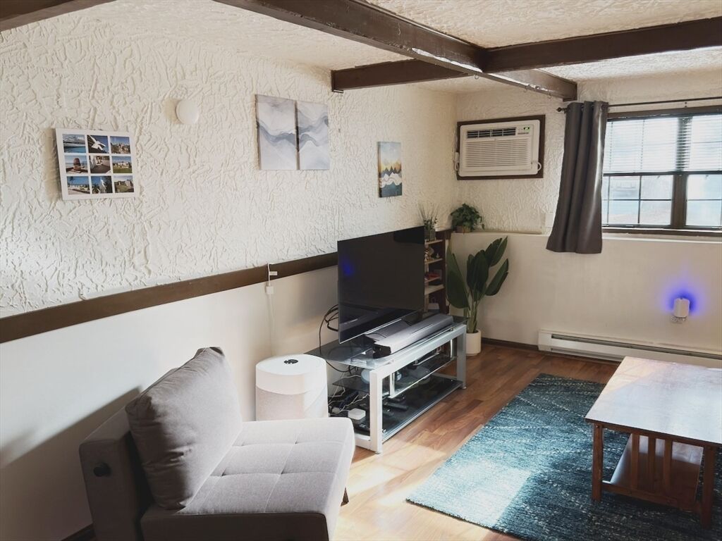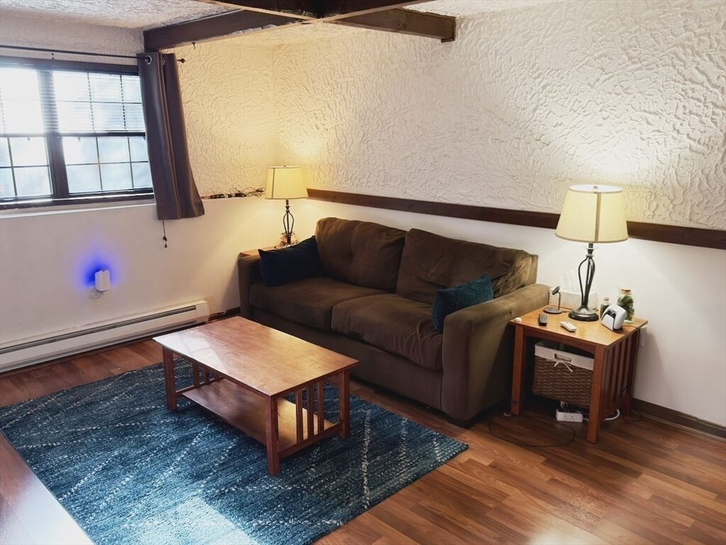 Welcome home to this spacious one bedroom one bathroom condo located in the Brook Village Condominiums offering a quiet and peaceful atmosphere. This unit includes a good sized living room with dining area, kitchen with stainless, one bedroom and one full bath. The flexible layout allows for the dining area to be used for home office space. New kitchen appliances and newly renovated bathroom. Beamed ceilings and lots of closet space. Includes two parking spaces with all parking located steps to the building, there is common laundry, and storage space in the attic area. Location is key with access to nearby hiking and walking trails. Get into the Acton/Boxborough school system. Easy commute to Boston via the nearby Commuter Rail and commuter access via Routes 2, Rt 495 and Rt 95/128. Pets allowed with restrictions. Do not miss!