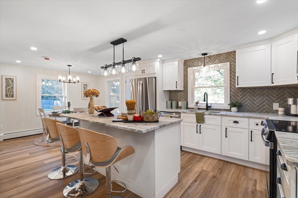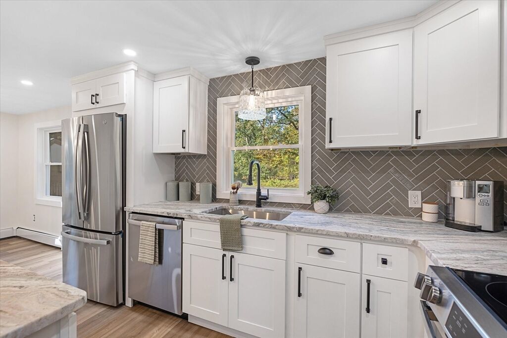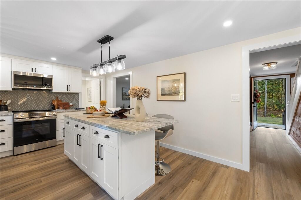 Welcome to 420 Queen Lake Road! This fully renovated 4 bed, 2.5 bath home offers 2,240 sq ft of living space on a private 1.78 acres with an oversized 2-car garage. Every detail has been redone—new roof, windows, flooring, paint, plumbing, mechanicals, furnace, electrical panel & service, plus a new concrete walkway. Inside, the bright open layout features a stunning kitchen with stone countertops, a beautiful herringbone backsplash, stylish cabinetry, and stainless appliances. Bathrooms are completely updated with modern finishes. Passing Title 5 septic inspection provides peace of mind. Located just .7 miles to public beach access on Queen Lake and 9 minutes to Route 2, this property offers both convenience and privacy. Spacious bedrooms, abundant natural light, and turnkey upgrades throughout make this home move-in ready. Enjoy your own in-ground pool and expansive yard! Close to local trails and queen lake public beach. Agent has interest in the transaction.