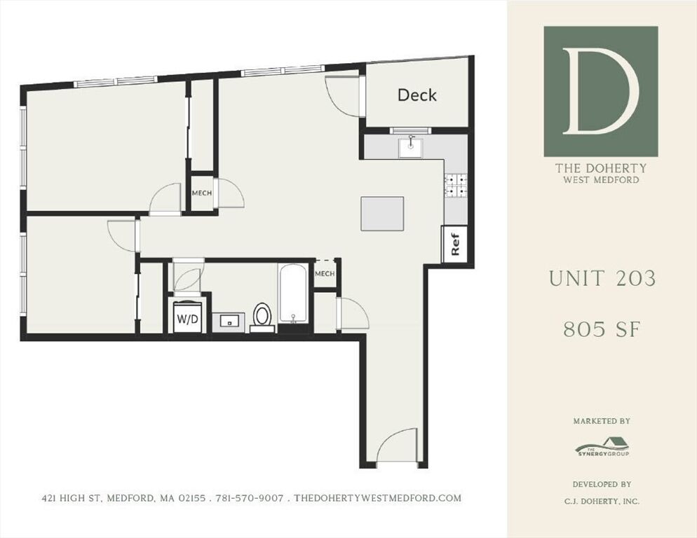New Construction 2 bed at The Doherty West Medford a boutique 9-unit condo community designed for modern living. This exceptional two bed, one bath rear facing corner unit is filled with natural light and bodes a private, covered deck and deeded parking spot. Open concept kitchen with peninsula for three bar stools, induction range, contemporary slab cabinets and high ceilings. A popular well know ground-level coffee shop brings convenience to your doorstep. Nestled in a prime location just 0.1 miles from the West Medford MBTA station, enjoy convenient access to public transit, as well as local restaurants, shops, and parks. With major routes nearby, easily commute into Boston and the surrounding communities. Area amenities include The Middlesex Fells Reservation with 2,200 acres of hiking trails, and Tufts University. Enjoy the benefits of urban living without the Boston price tag. Also available 4 spectacular two-level units with large 20' long private roof decks.