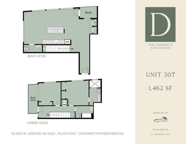 OPEN HOUSE SAT/SUN 12-2! Welcome to The Doherty West Medford, a new era of contemporary living. This boutique 9-unit condo complex is designed for modern living, offering stylish residences with premium finishes throughout. This exceptional 2 bed, 2.5 bath two-level residence bodes a private, covered deck on the main level PLUS a private 20' rooftop deck upstairs. The cutting edge kitchen highlights slab cabinets, chrome hardware, Samsung appliances including refrigerator with touchscreen, beverage cooler, and center island accented by a sophisticated hanging hood. A ground level coffee shop brings convenience to your doorstep, plus one deeded parking spot. Nestled in a prime location just 0.1 miles from the West Medford MBTA station, enjoy convenient access to public transit, as well as local restaurants, shops, and parks. With major routes nearby, easily commute into Boston and the surrounding communities. Area amenities include The Middlesex Fells Reservation and Tufts University.