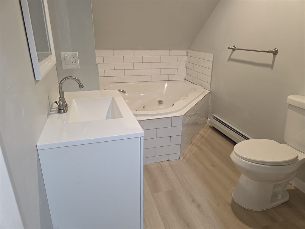 Beautifully renovated and exceptionally spacious 4-bedroom townhouse offering over 2,000 sq. ft. of modern living space. The stunning new center-island kitchen features quartz countertops, white shaker cabinetry, and stainless steel appliances—perfect for everyday living and entertaining. Enjoy updated bathrooms, brand-new flooring throughout, and a flexible upper-level bonus area that can function as a private 5th bedroom suite, home office, or guest space. Additional highlights include two off-street parking spaces and a prime location with easy access to major highways, schools, shopping, and all the vibrant restaurants and amenities of downtown Amesbury. Move-in ready and not to be missed!