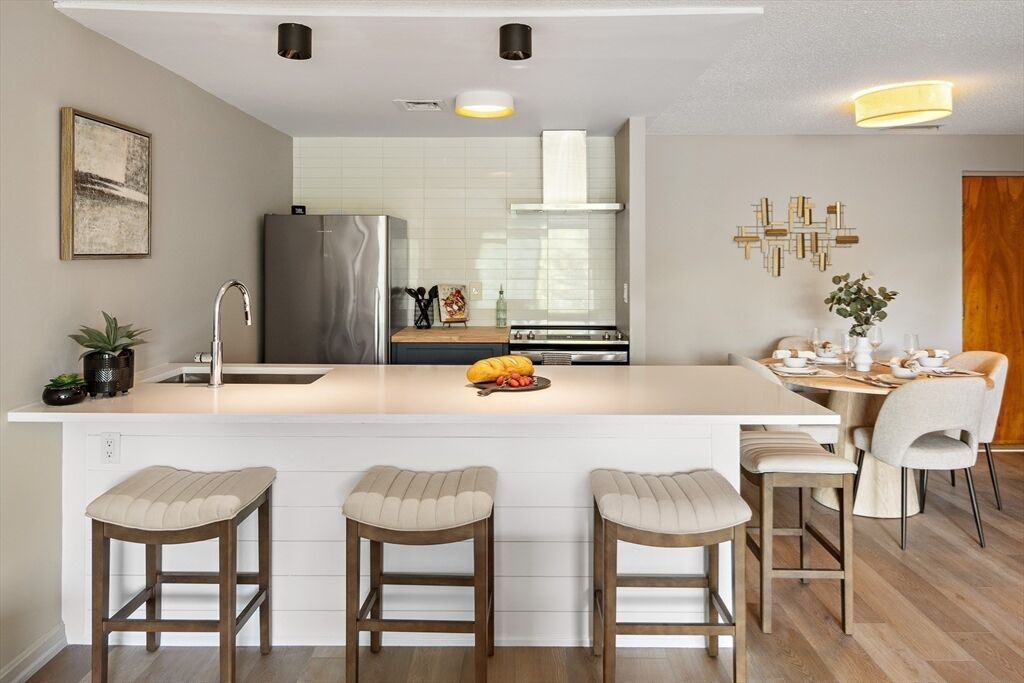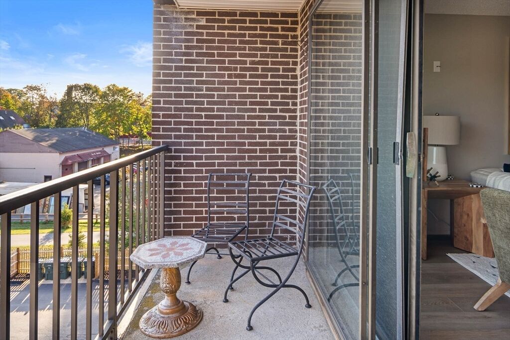 Top-Floor 1 bedroom condominium in elevator building near Stoneham Center. This modern flat features an open floor plan which includes newly a renovated kitchen with an oversized peninsula providing ample workspace and casual dining. The stainless-steel appliances, externally-vented exhaust hood, quartz counters and tile backsplash complete the contemporary look. The oversized bedroom includes three large closets with additional storage under the built-in window seat. The modern bathroom features a wall-hung vanity, soaking tub and Dutch Marmoleum flooring. All-new wide-plank flooring throughout adds additional modern sophistication. A sunny private balcony has completely unobstructed views and overlooks the Tri-Community Greenway walking/biking path and fields. Facing south, the home is drenched in sunlight throughout the day. Additional private storage closet located on the first floor. Short walk to shopping and dining and easy commuting with Interstate 93 and 95 minutes away.