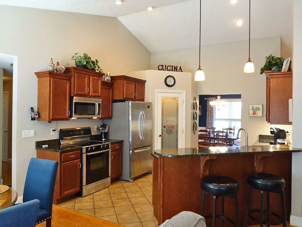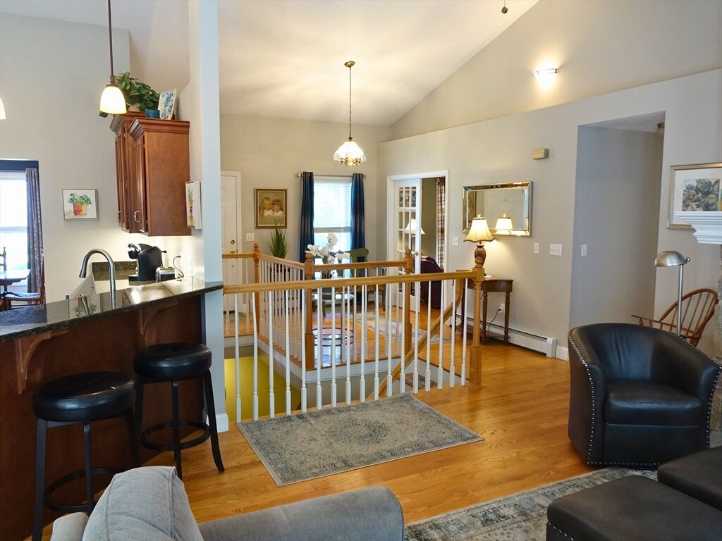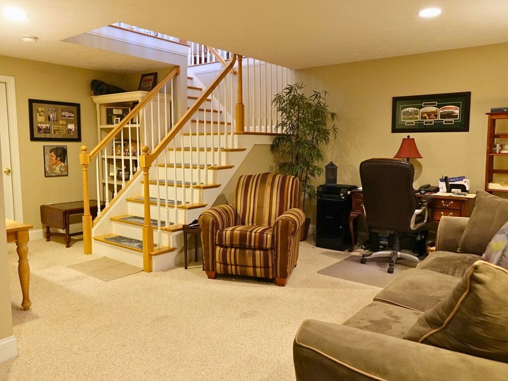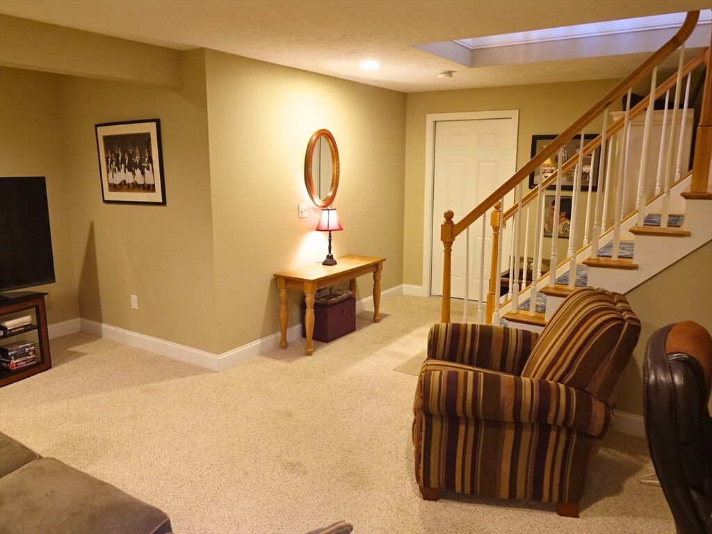 Welcome to 43 Saint Anthony Street! This stunning Executive Ranch Home has been meticulously maintained, featuring an open concept floor plan, cathedral ceilings, gleaming hardwoods, oversized windows & exquisite finishing touches. Off foyer, two nicely-sized bedrooms flank a tiled, full-bath. The fireplaced living room leads you to the beautiful, dine-in Kitchen. Well-appointed with handsome granite countertops, breakfast bar, convenient pantry, the kitchen opens to the formal dining room. Past the laundry room is the Main Bedroom, adorned w/a tray ceiling, and the bath w/ a double vanity & a multi-head, custom, tiled shower. Downstairs, you'll find the comfortable Family Room, another full bath, a huge Bonus Room, and an additional 540 sqft of unfinished space! Many updates over the years, including leased solar panels, deck recently replaced, driveway repaved & recently sealed, Bosch high-efficiency boiler & indirect water heater installed. Great commuter location. This is home.