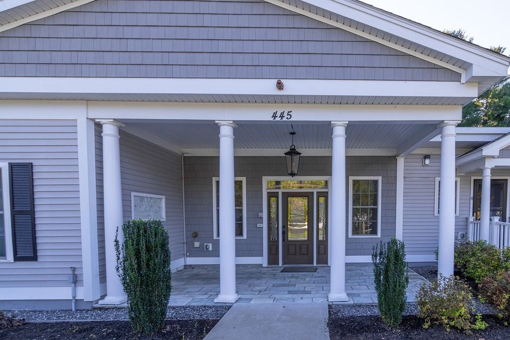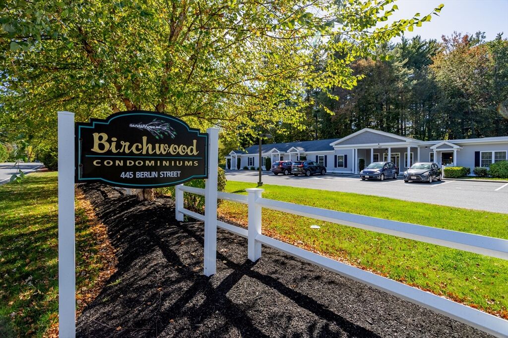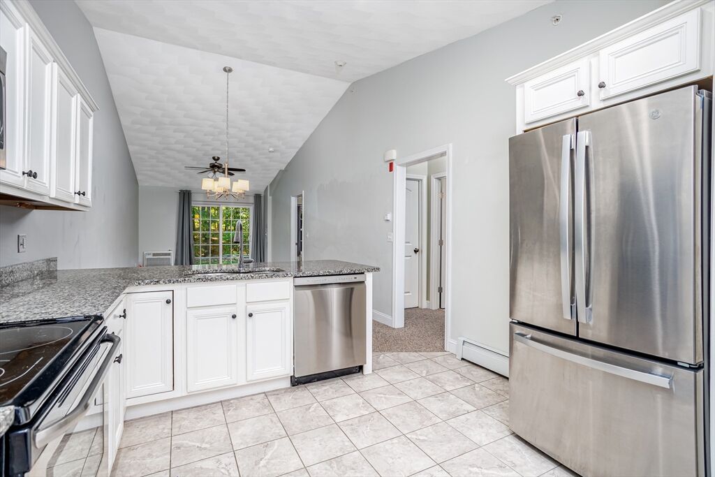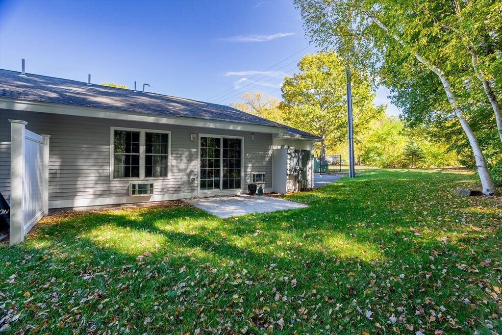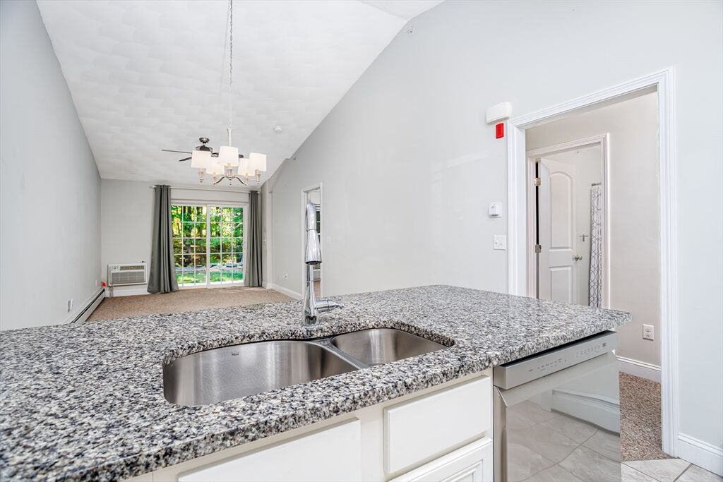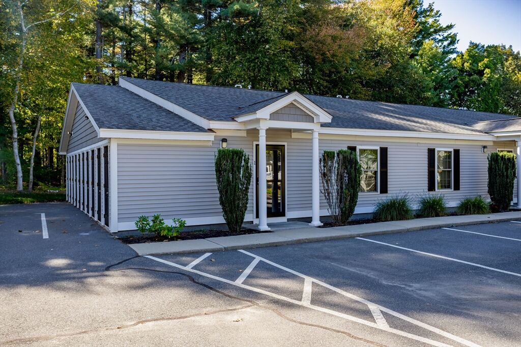 Looking for single level living? This desirable END UNIT condo built in 2015 features an open concept floor plan all on one level! Enjoy the spacious kitchen featuring white cabinets, glistening granite countertops and stainless steel appliances with a breakfast bar! Dining/living area boasts cathedral ceilings and slider to wooded backyard patio area great for relaxing or entertaining - you decide! First floor primary bedroom abuts the woods for ample privacy with a primary bathroom with walk-in shower and walk-in closet! Guest bedroom and additional full bathroom. Utility room with laundry in unit. Common room with meeting area and exercise room. Condo fee includes master insurance (exterior), 8x4 storage space, landscaping, snow removal, trash, and water/sewer. Pet friendly – max of 1 pet allowed (up to 35 pounds). Great commuter location close to 495, shopping & restaurants. Don't wait... get used to the maintenance free lifestyle of condo living today!