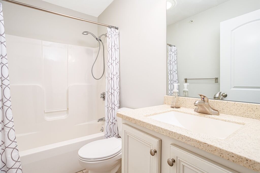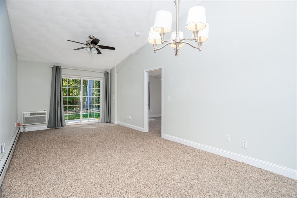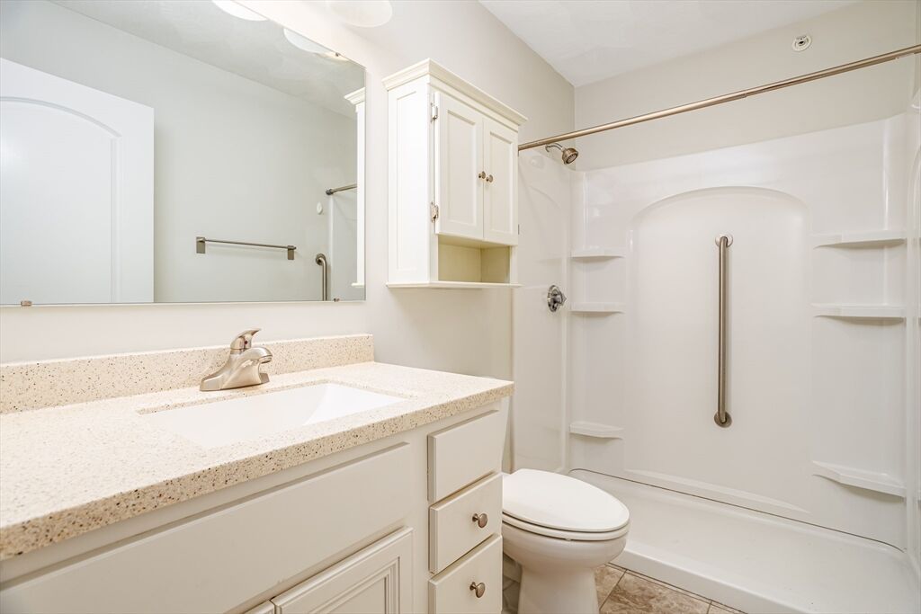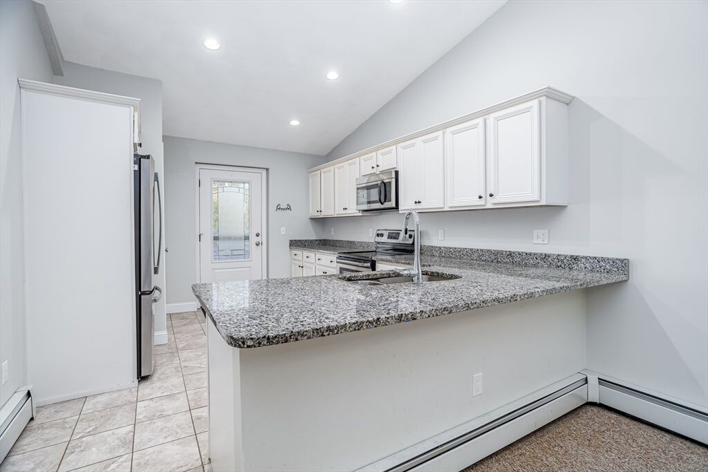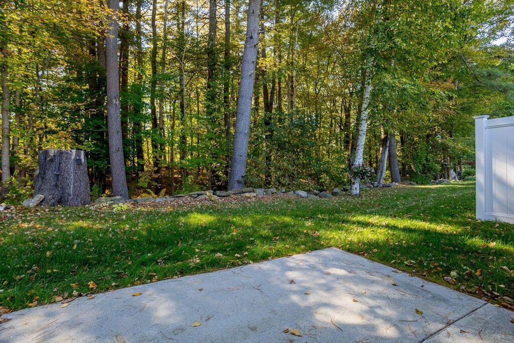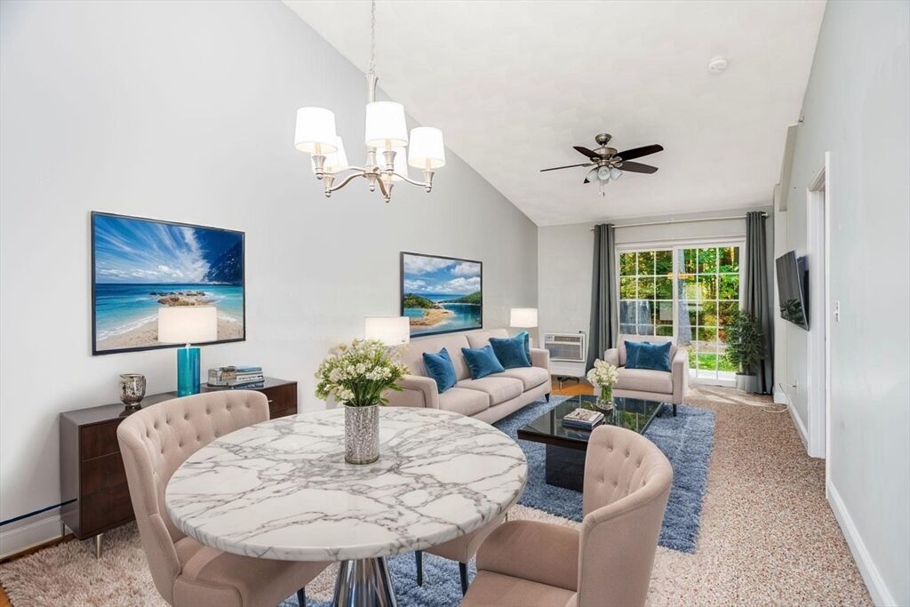 Looking for single level living? This desirable END UNIT condo built in 2015 features an open concept floor plan all on one level! Enjoy the spacious kitchen featuring white cabinets, glistening granite countertops and stainless steel appliances with a breakfast bar! Dining/living area boasts cathedral ceilings and slider to wooded backyard patio area great for relaxing or entertaining - you decide! First floor primary bedroom abuts the woods for ample privacy with a primary bathroom with walk-in shower and walk-in closet! Guest bedroom and additional full bathroom. Utility room with laundry in unit. Common room with meeting area and exercise room. Condo fee includes master insurance (exterior), 8x4 storage space, landscaping, snow removal, trash, and water/sewer. Pet friendly – max of 1 pet allowed (up to 35 pounds). Great commuter location close to 495, shopping & restaurants. Don't wait... get used to the maintenance free lifestyle of condo living today!