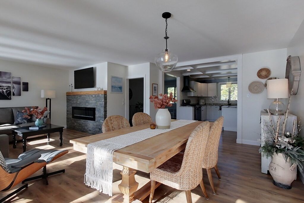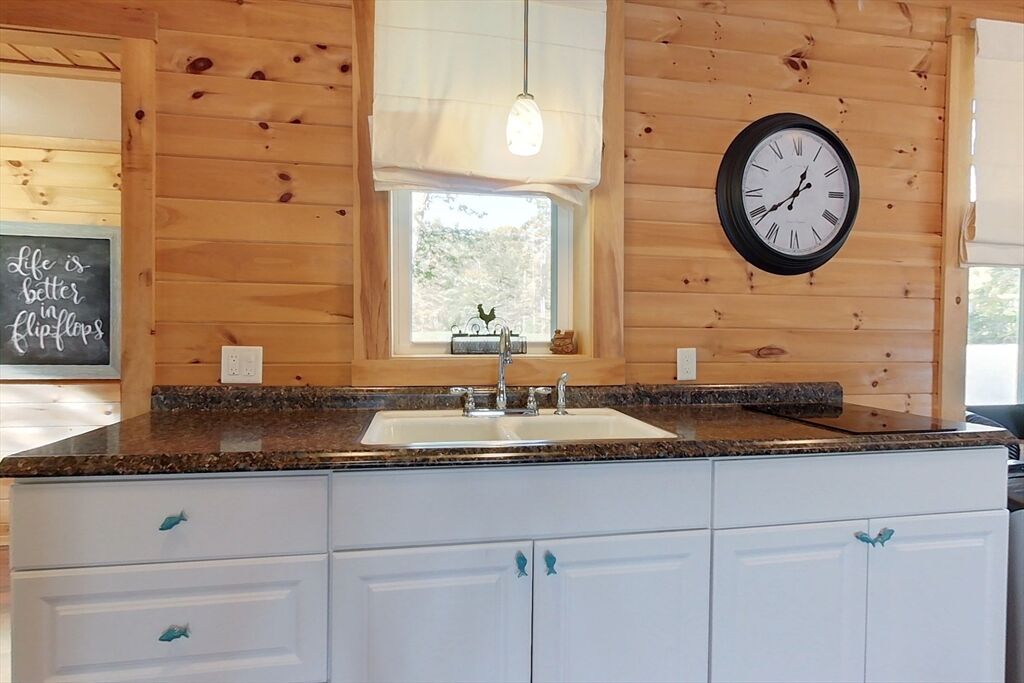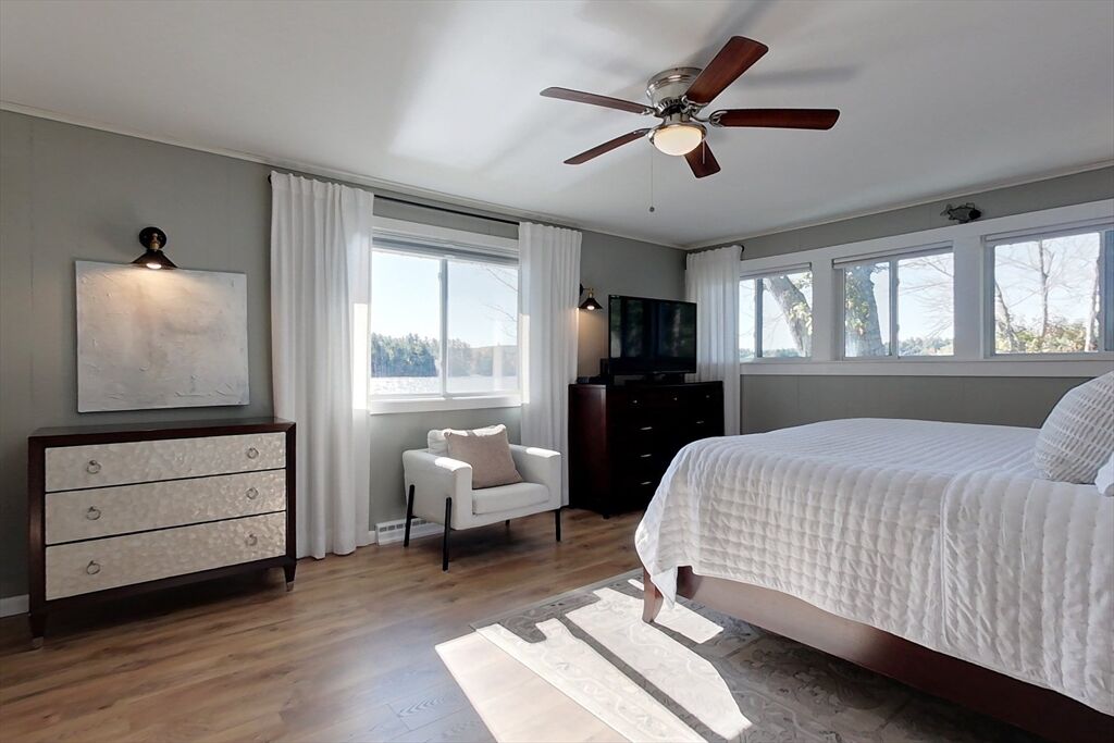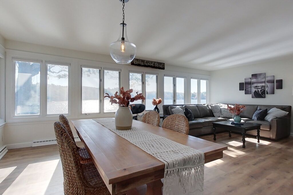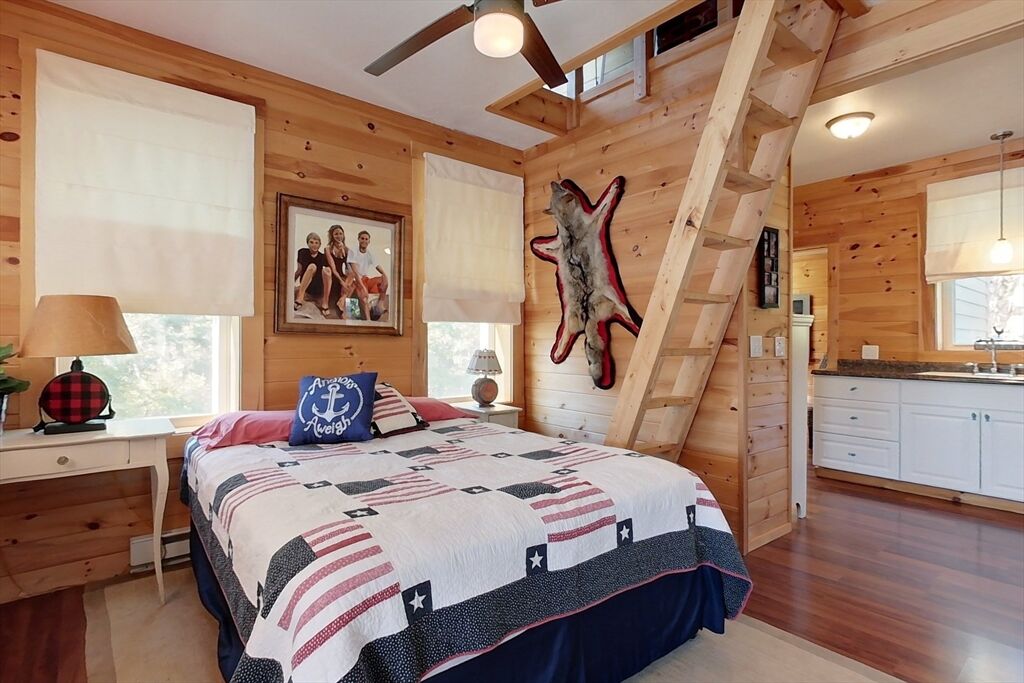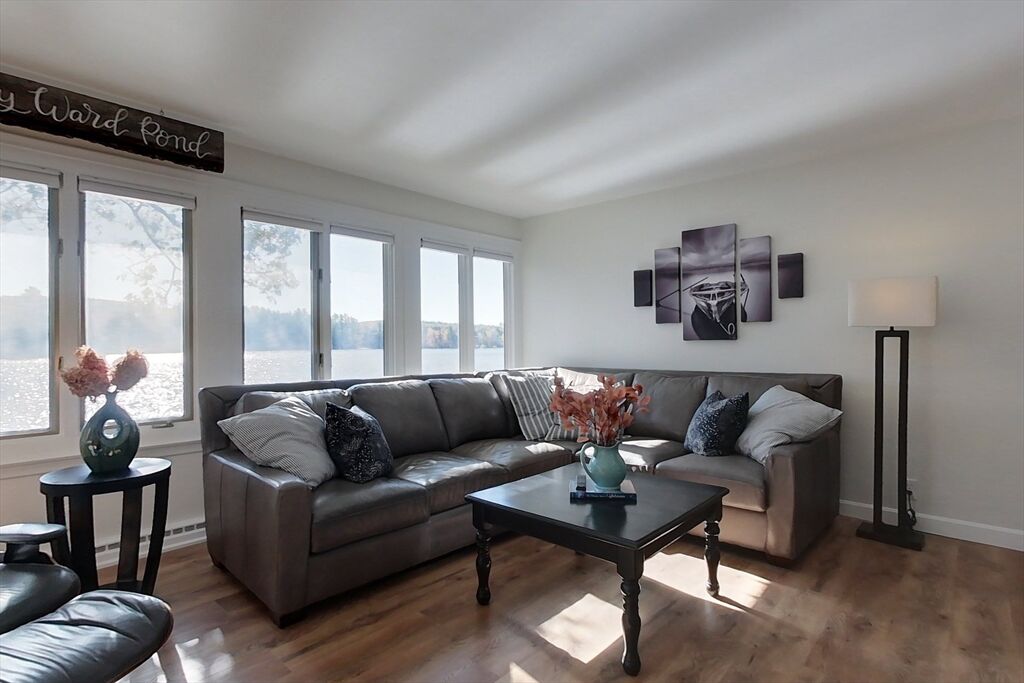 Experience year-round waterfront living on nearly 2.5 acres w/ over 400 ft of frontage! This stunning 2-bedroom raised ranch w/ a detached 1-bedroom lofted cottage—each w/ its own kitchen & living area—has been beautifully updated throughout. Enjoy new floors, counters, & island, fully renovated baths, added electric fireplaces, & new garage doors and insulation (2019). The main home’s open layout showcases a grand kitchen w/ white shaker cabinets, stainless farmers sink, & coffered ceilings that flow into a sun-drenched living & dining area wrapped in 14 windows framing serene water views. Both bedrooms feature private ensuites. Outdoors, enjoy professionally landscaped grounds, an outdoor shower, new dock (power boats welcome), fire pit area, & oversized heated garage. The unfinished lower level offers excellent storage or future expansion. The charming guest cottage completes this private, picturesque retreat. Showings begin at an Open House on Sat, 10/18 from 11:00-1:00.