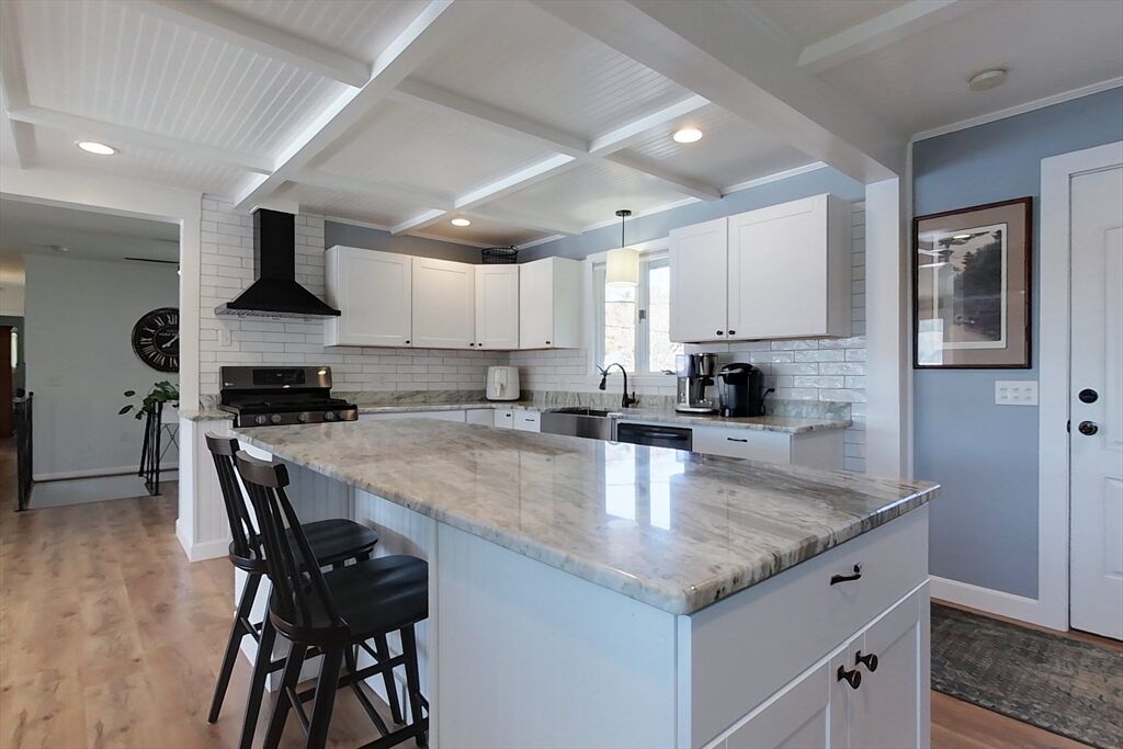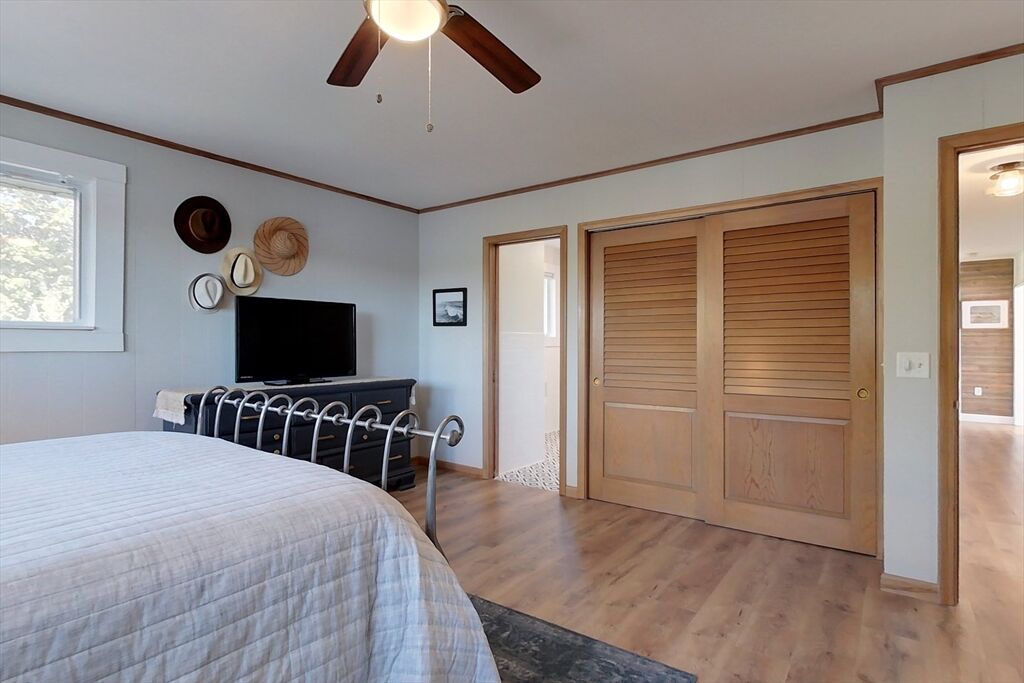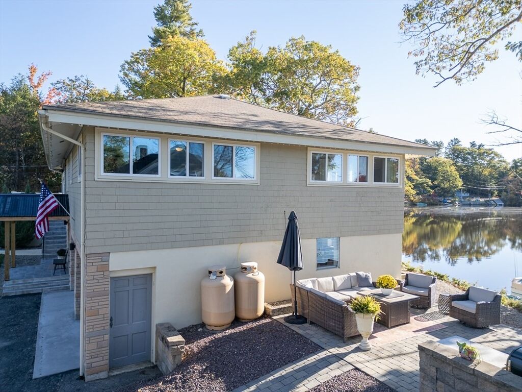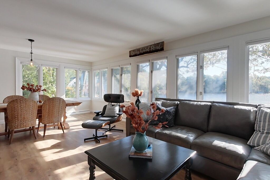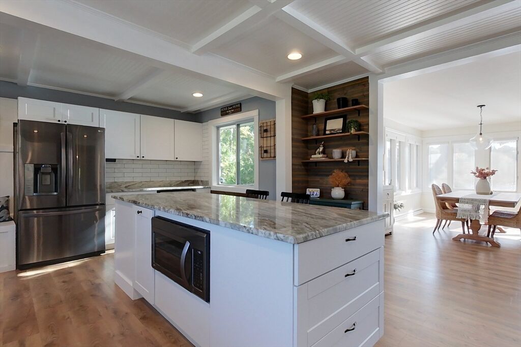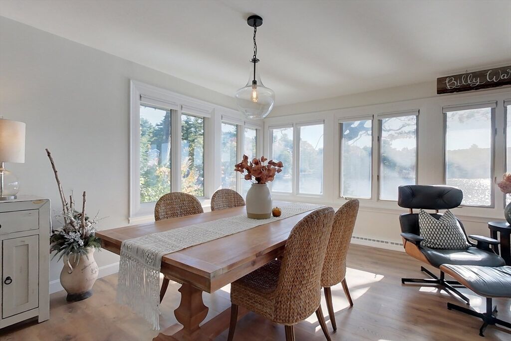 Experience year-round waterfront living on nearly 2.5 acres w/ over 400 ft of frontage! This stunning 2-bedroom raised ranch w/ a detached 1-bedroom lofted cottage—each w/ its own kitchen & living area—has been beautifully updated throughout. Enjoy new floors, counters, & island, fully renovated baths, added electric fireplaces, & new garage doors and insulation (2019). The main home’s open layout showcases a grand kitchen w/ white shaker cabinets, stainless farmers sink, & coffered ceilings that flow into a sun-drenched living & dining area wrapped in 14 windows framing serene water views. Both bedrooms feature private ensuites. Outdoors, enjoy professionally landscaped grounds, an outdoor shower, new dock (power boats welcome), fire pit area, & oversized heated garage. The unfinished lower level offers excellent storage or future expansion. The charming guest cottage completes this private, picturesque retreat. Showings begin at an Open House on Sat, 10/18 from 11:00-1:00.