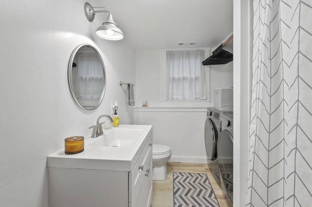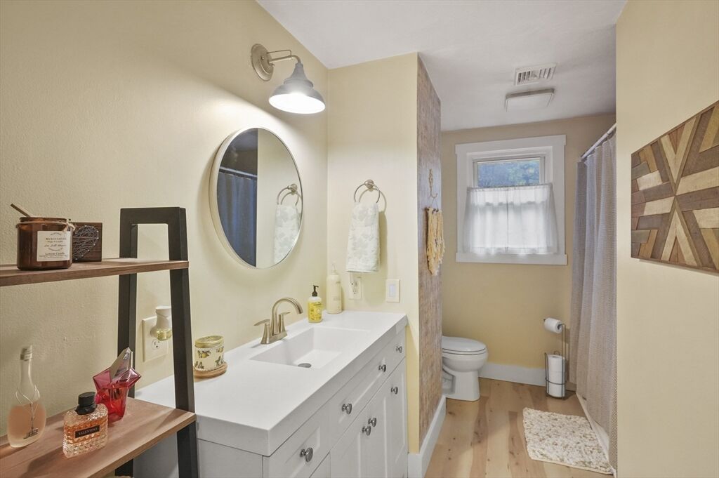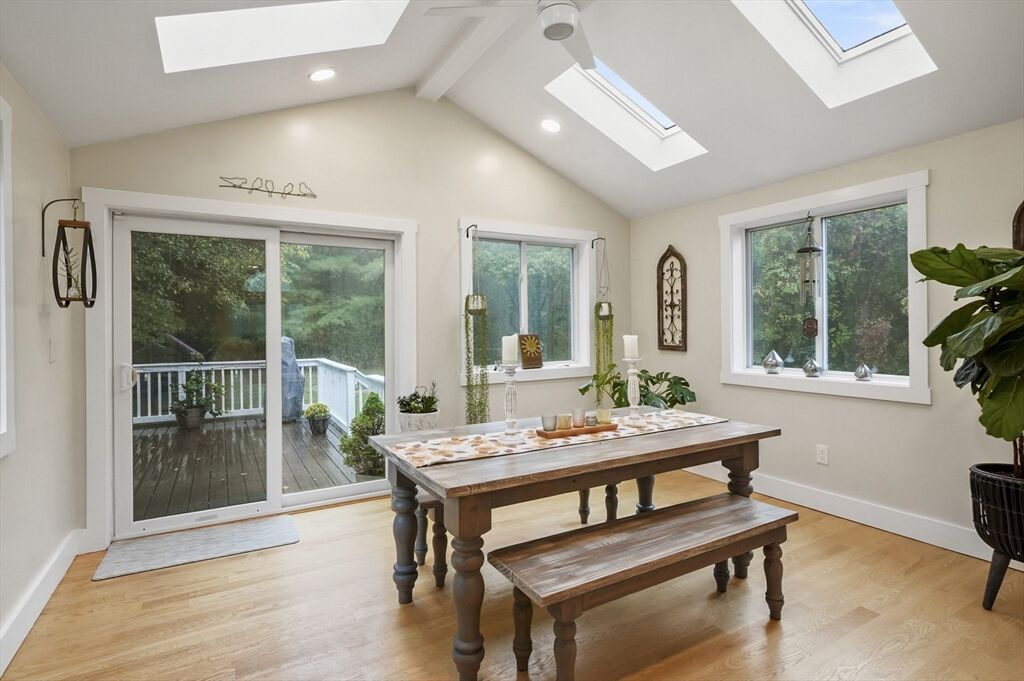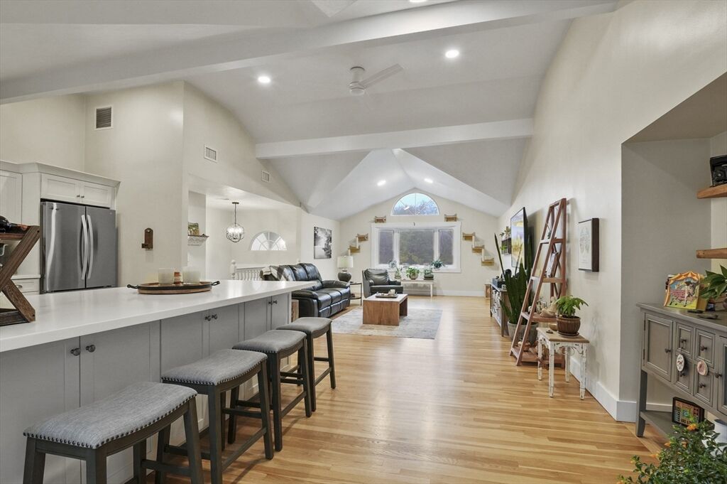 Welcome to this expansive, completely renovated (2021) move-in ready 4 bed, 2 bath raised ranch home located in beautiful Sterling. The open concept main level invites you in w/ HW floors throughout. This living room features sky-high vaulted ceilings & a bow window. The chef's kitchen offers a large breakfast bar & SS appliances. Enjoy entertaining in the formal dining room w/ its own vaulted ceilings, skylights, & convenient slider access to the back deck. Down the hall are 3 sun-filled bedrooms & a full bath. Head downstairs to discover even MORE living space, including a family room centered around a cozy, new gas fireplace (2022,) & 4th bedroom & a full bath w/ laundry. This home is truly meticulous w/ recent upgrades including a new gutter system, re-sanded front walkway pavers & an adorable new mailbox! Outside, you'll love the back deck which overlooks a private, serene backyard, front yard is professionally landscaped w/ an exquisite native wildflower garden.