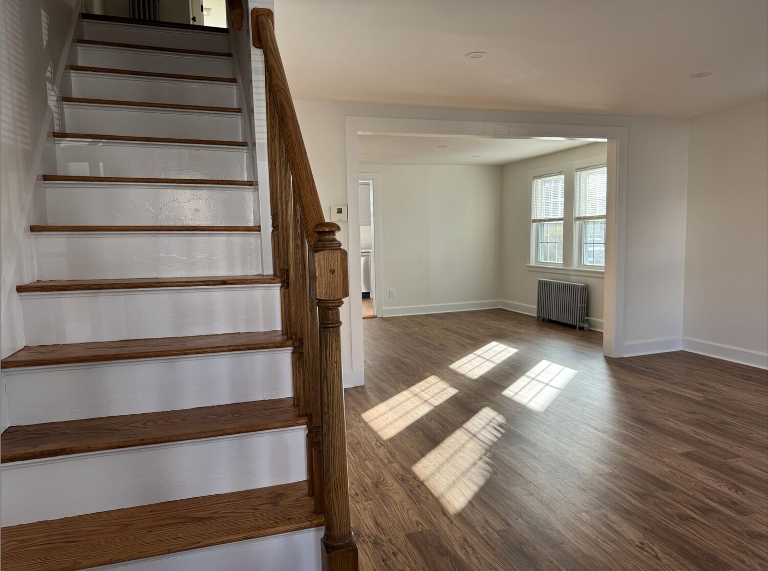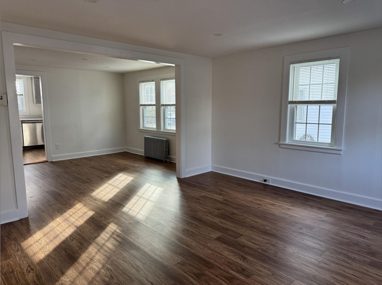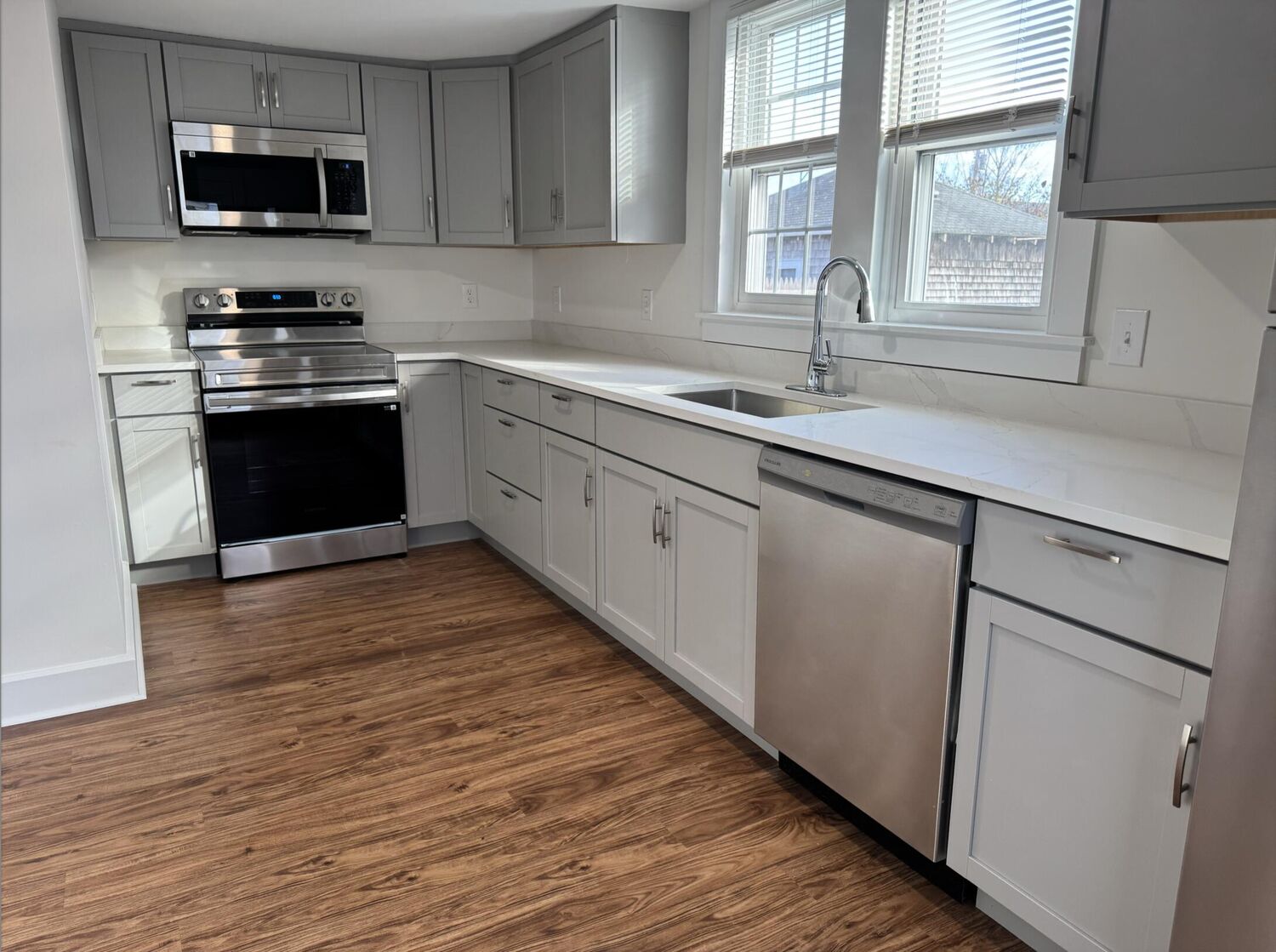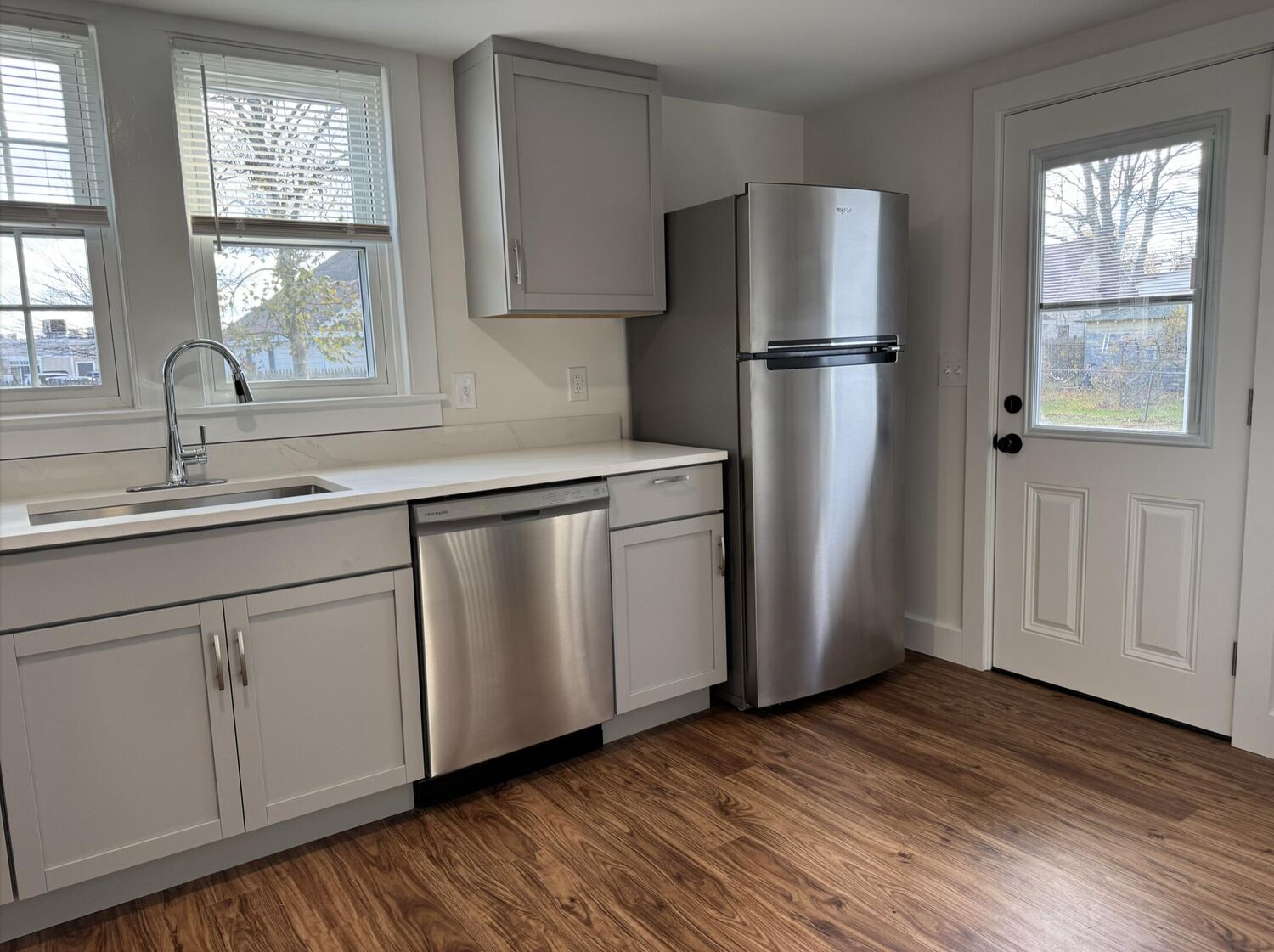 YEAR ROUND RENTAL Available immediately. This recently renovated unit is spacious and bright, with an open floor plan for comfortable living. The gorgeous kitchen is nicely appointed with stainless appliances, dishwasher, and great cabinet & counter space. It features 3 bedrooms on the second floor and wood floors throughout. There is a full, beautifully updated bathroom on each level. It boasts gas heat and ample storage, including full basement with washer & dryer. There are two dedicated off-street parking spots and outside space for planting or barbecues. Situated in a prime downtown location, just a short stroll to fantastic dining and shopping options, perfect for anyone who enjoys being part of a lively community. Minimum 1 year rental, ideal for those looking to settle down for a while. No pets, no smoking. Landscaping and trash removal included. Application with credit check. This stunning updated property is sure to impress. Please note the available space (1/2 of duplex) is 1,172 sq ft.