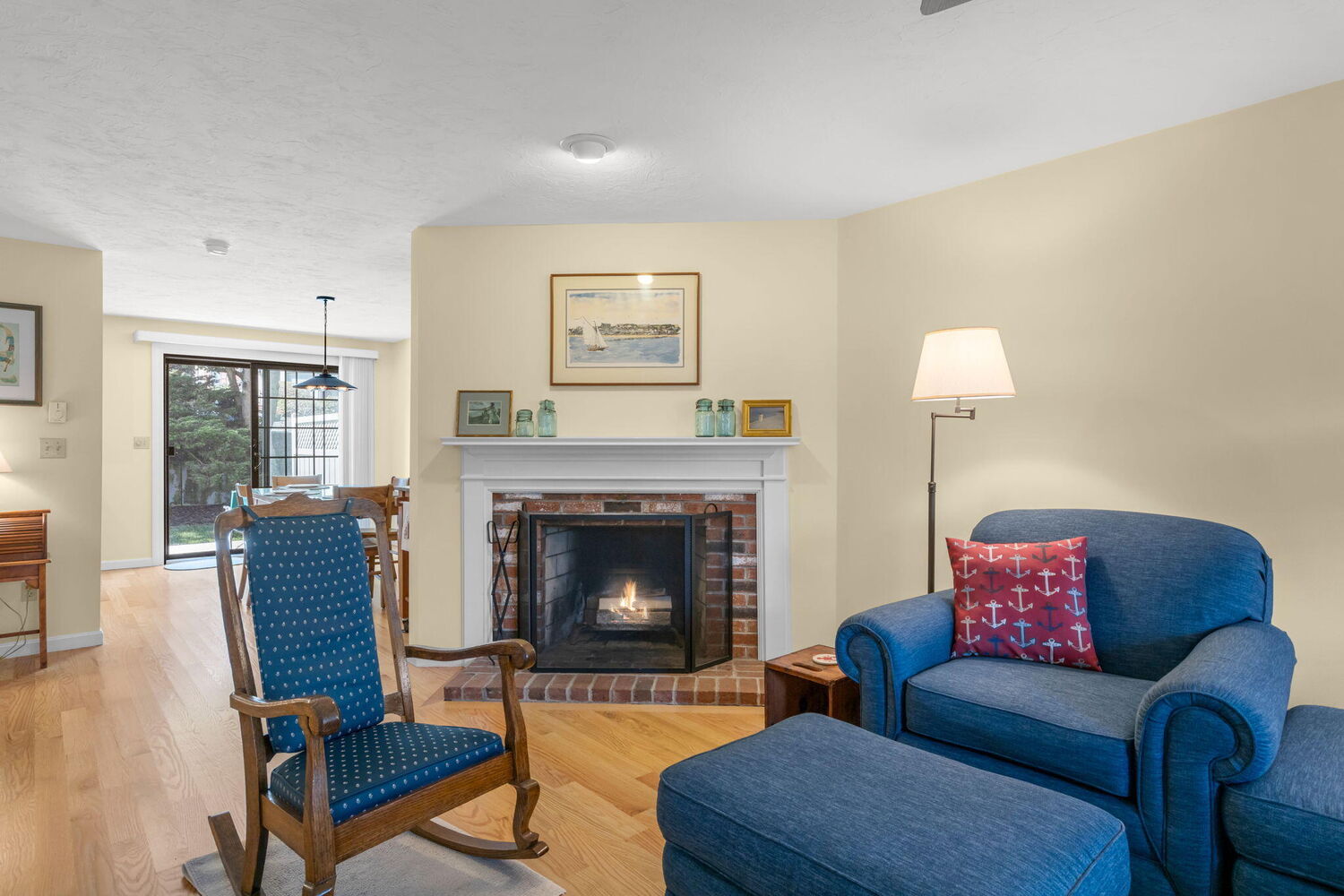 This move-in ready townhouse is just 1 mi from pristine Skaket Beach on the warm waters of Cape Cod Bay. The first level features a bright open floor plan, living room with wood burning fireplace, half bath, updated kitchen and dining area that opens to a private rear deck for summer barbecues. Upstairs are 2 generous bedrooms, one with walk-in-closet, and a full bath. Recent improvements include hardwood flooring throughout the first level, updated baths, new slider to the deck, and new hot water tank. Offering electric heat and free standing A/C units for comfort year 'round. The full basement includes a laundry area and has bunkhead access for easy storage of bikes, kayaks and beach gear. It could be finished for additional living space. Conveniently located close to the Rail Trail bike path, walking distance to fine dining, and half a mile to shopping. Furnishings are available, with a few exclusions. Is this the home you've been looking for?