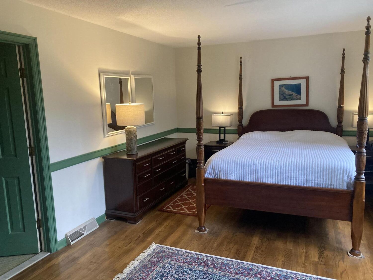 Riverbay, Chatham... True One Level living with Garage/parking on home level. 8 room custom built ranch with side loading garages, high profile roofline, integrated front porch. Inside, abundant common areas and living space. entrance hallway opens to the living and dining rooms, and two hallways leading to the 3 bedrooms. At the back of the home- 3 additional rooms: a fireplaced family room, an eat-in kitchen with bay window, and a private office. In addition, a walk-in pantry off the kitchen and a main floor laundry room on the main floor. Basement stairs located off the interior garage entry and the exterior side door. The home sits atop a hill, providing curb appeal, excellent drainage and a dry basement. The elevation would be best suited to an AWD vehicle for the occasional snowy day. Outside, there are set down areas in both front and back of the house with total privacy. Back inside, there are wood floors throughout, even in the kitchen. The 2 bathrooms are original, reflected in the price. Most furniture/furnishings convey. New 96% HE gas furnace with AC coil Oct 2020, Certainteed roof March 2022,Garage Door Sept 2022, Hot water heater June 2025.