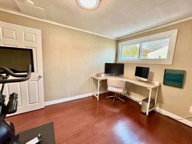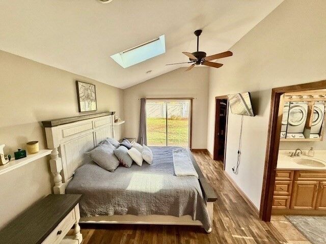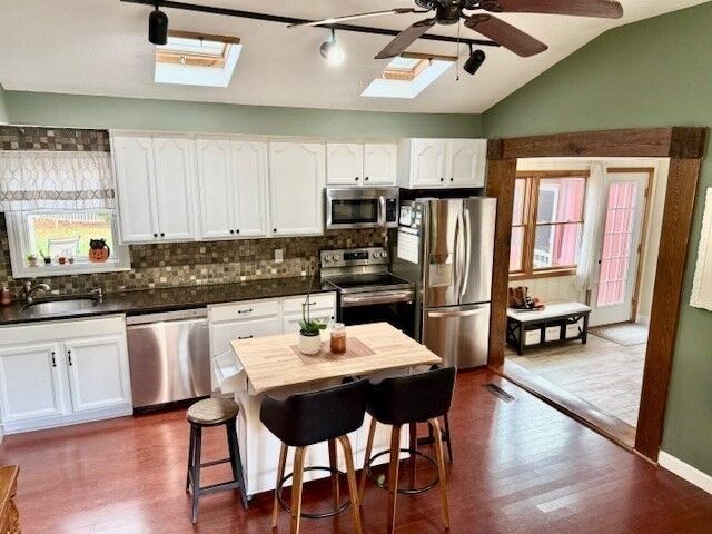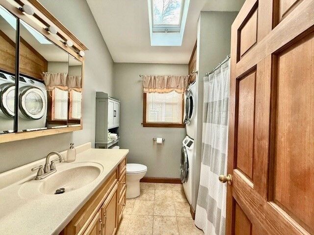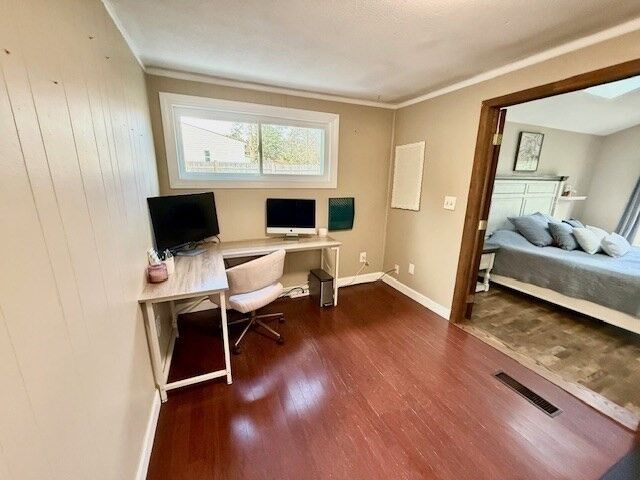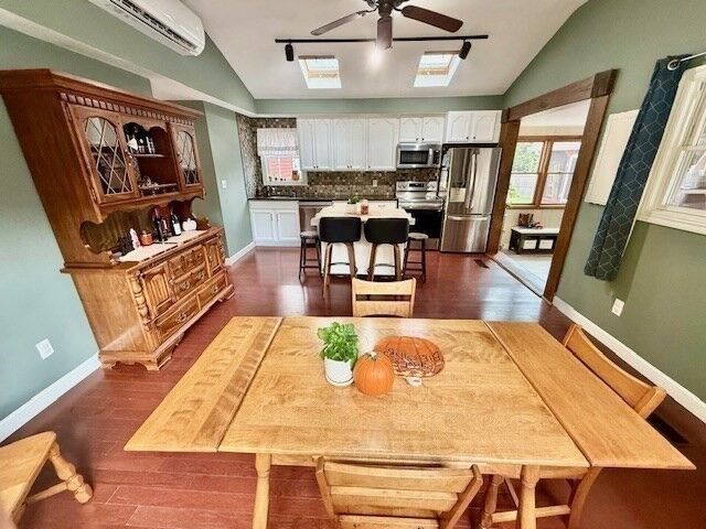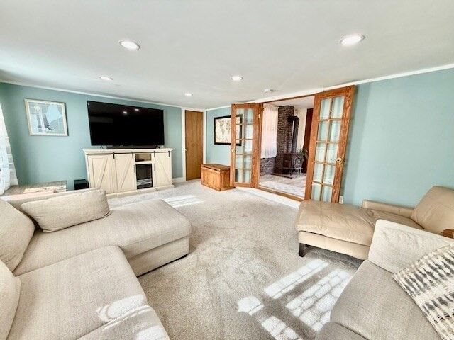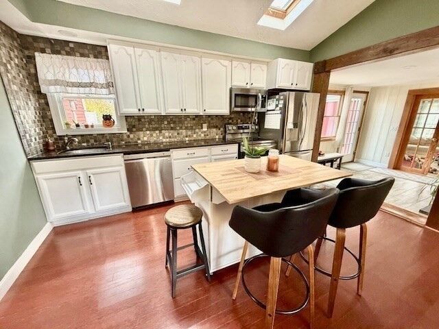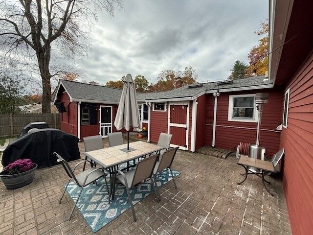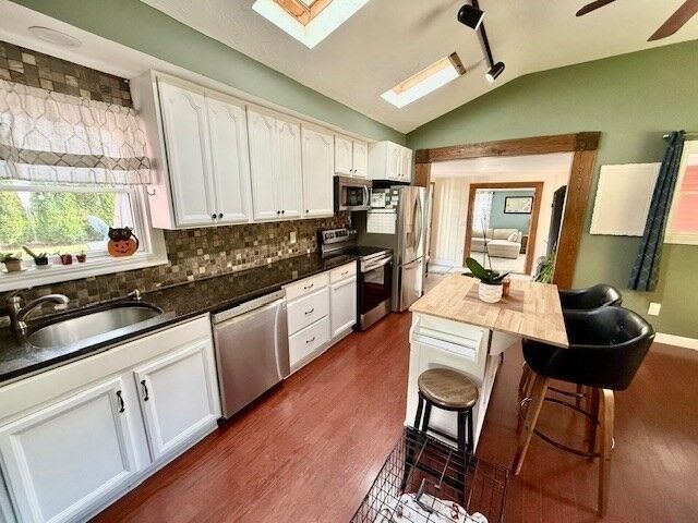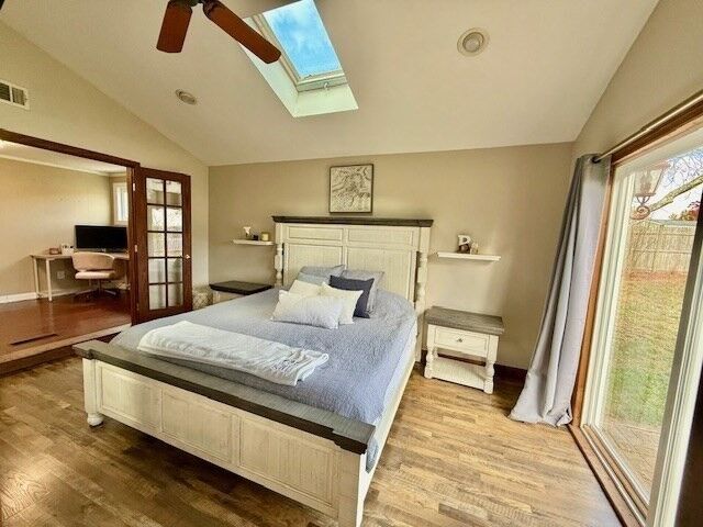 Welcome to this lovely ranch-style home set in a peaceful neighborhood setting. Step inside through the bright mudroom, featuring a cozy wood stove. French doors open into the spacious living room with newer carpeting, adding warmth & charm to the space. The open-concept kitchen & dining area boast granite countertops, nice wood cabinetry, a stylish tile backsplash, & cathedral ceiling, creating an inviting space for gatherings. Down the hall, cherry hardwood floors lead you to the main bath, 2 comfortable bedrooms & a study (which may be used as another BR if desired). The primary en-suite features cathedral ceiling, skylights & large walk-in closet. For added convenience, the primary bathroom includes a stackable washer & dryer. Sliding doors from the primary bedroom opens to a beautifully flat, fenced-in backyard, ideal for outdoor entertaining. This home offers comfort, convenience, and numerous updates. Move right in! 1st showings at Open Houses: Sat/Sun, 11/1 & 2, 11:30-1pm.