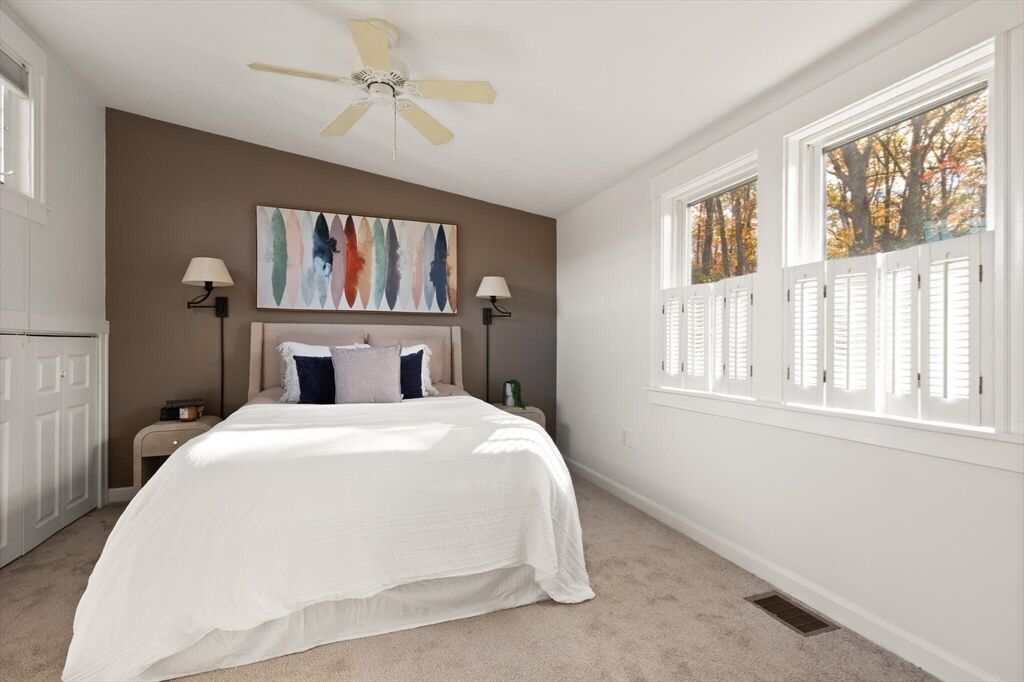 Charming cape, sited on lovely tiered lot, up away from street with mature plantings. Welcoming entry way leads to open floor plan featuring light and bright living room with French doors to relaxing deck. Inviting dining room with built-in hutch--great for entertaining--hardwood floors, newer windows. Updated kitchen with granite counters, upgraded appliances, open to comfortable family room with new flooring. First floor bedroom, office, full bath. Newly carpeted second floor--main bedroom with built-in sconces, additional bedroom, bath and generous storage. Full, partially-finished basement with laundry room Improvements and updates throughout. Serene private rear yard abutting conservation land. Storage Shed. Conveniently located to trails, parks, restaurants, and all that Melrose and surrounding towns have to offer. Short distance to highways, universities, hospitals, museums, entertainment, sporting events, and all that Boston has to offer. A truly special property
