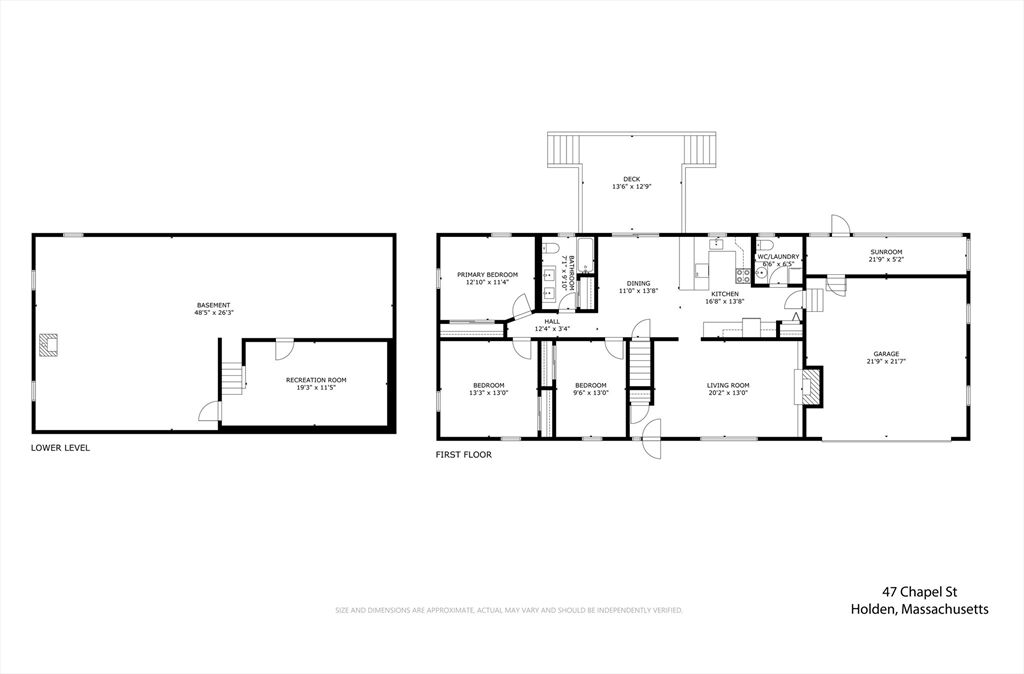Welcome to 47 Chapel Street in the sought-after town of Holden. This beautifully maintained and updated ranch offers over 1,650 sq ft of living space, ideal for raising a family or anyone looking for the ease of single-level living with bedrooms, laundry, and main living areas all on one floor. The home features three bedrooms, one and a half baths, and stunning hardwood floors throughout. The open kitchen and dining area provide a warm, inviting flow perfect for everyday life or entertaining. Downstairs, the large finished basement offers flexible space for a family room, gym, office, or play area. Set on a massive 1.25-acre lot with a huge backyard, this property combines space, charm, and convenience just minutes from Worcester. Thoughtfully cared for and move-in ready, this one is not to be missed.