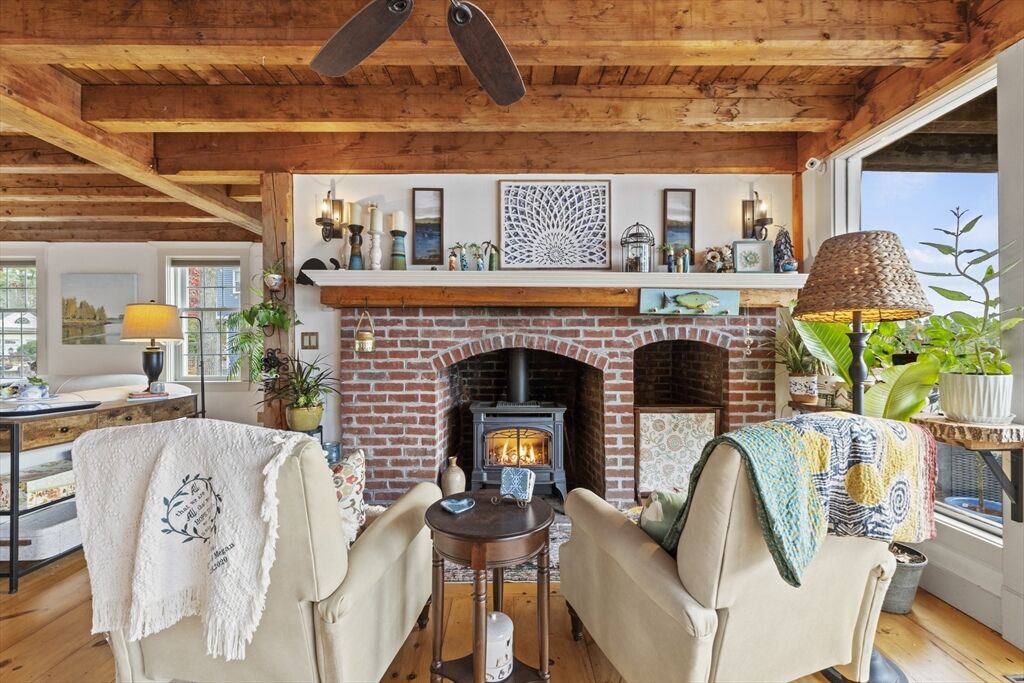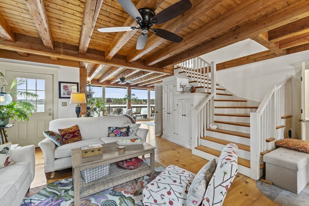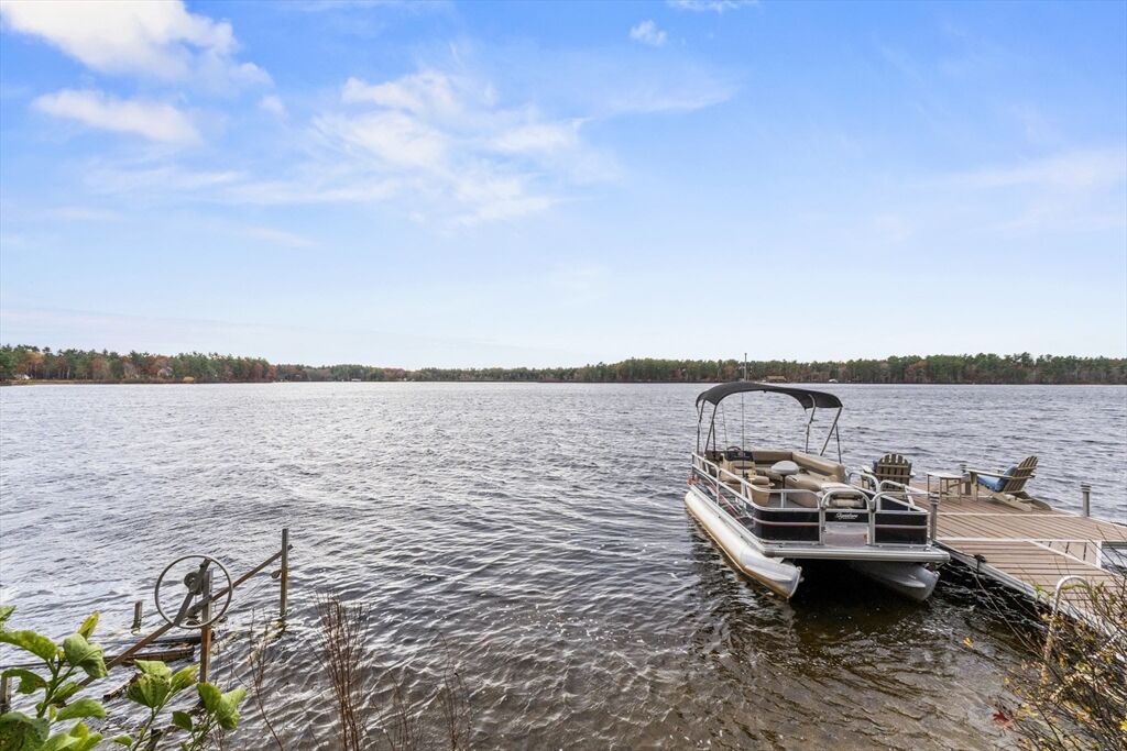 Experience lakeside living at its finest in this beautifully maintained Colonial offering over 2,000 sq. ft. of inviting space. Thoughtfully designed with warmth and character throughout, the home features rich hardwood floors, exposed beams, and an open floor plan perfect for everyday comfort and entertaining. The kitchen showcases granite countertops, a center island, and seamless flow to the dining and living areas. Upstairs, the primary suite opens to a private deck overlooking tranquil lake views—ideal for morning coffee or peaceful sunsets. Multiple outdoor decks, a screened porch, and a private dock create the ultimate setting for relaxing or hosting by the water. Nestled on a quiet dead-end street in Middleboro, this home blends timeless charm with the serenity of waterfront living, offering a rare opportunity to own a slice of natural beauty where every day feels like a retreat.