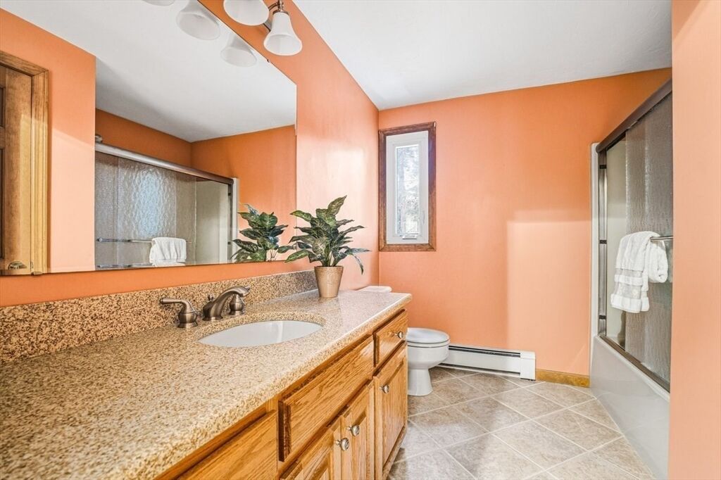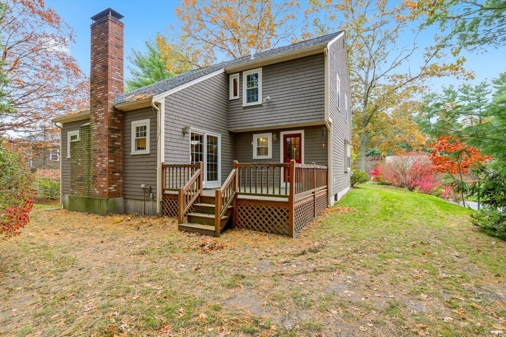 Well-cared-for Saltbox Colonial ready for new owners to refresh and create lasting memories! Nestled on a tree-lined cul-de-sac close to highways, schools, and shopping. This solid home offers a classic floor plan with great potential. The main level features a formal living room and dining room, eat-in kitchen opens to a cozy fireplaced family room with cathedral ceiling and access to the rear deck, perfect for entertaining or relaxing. A convenient half bath and laundry complete the first floor. Upstairs, you’ll find a spacious primary bedroom with a full bath, along with three additional bedrooms offering ample closet space and another full bath. Additional highlights include hardwood floors, newer windows, an unfinished lower level for storage or future expansion, a two-car under garage, and irrigation system. Set on a private, wooded lot, this home combines comfort, space, and opportunity—come make it your own story!