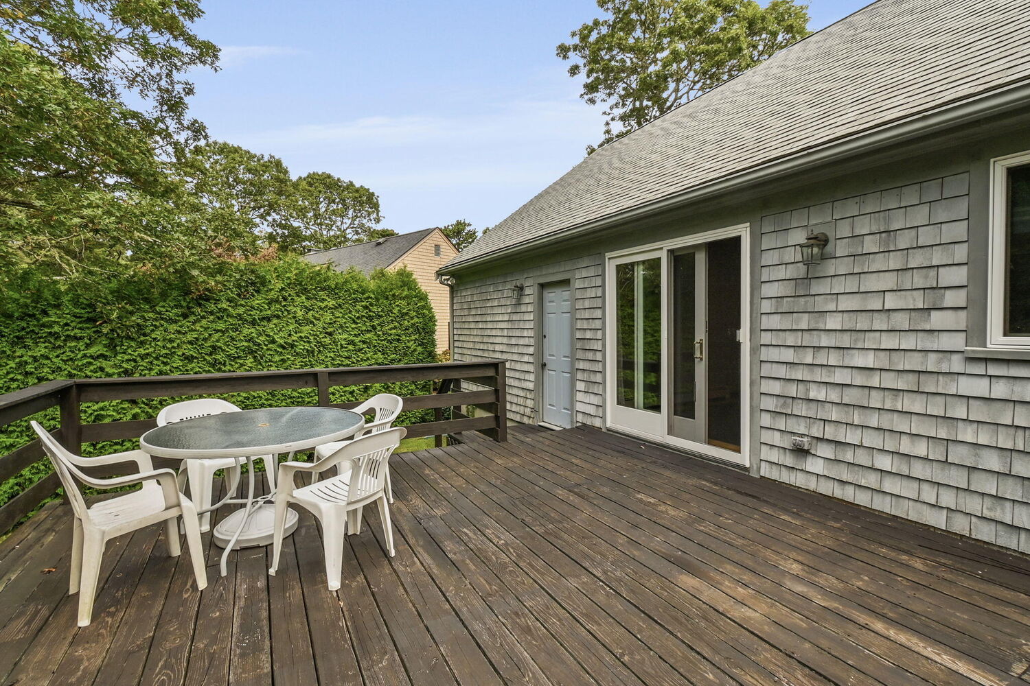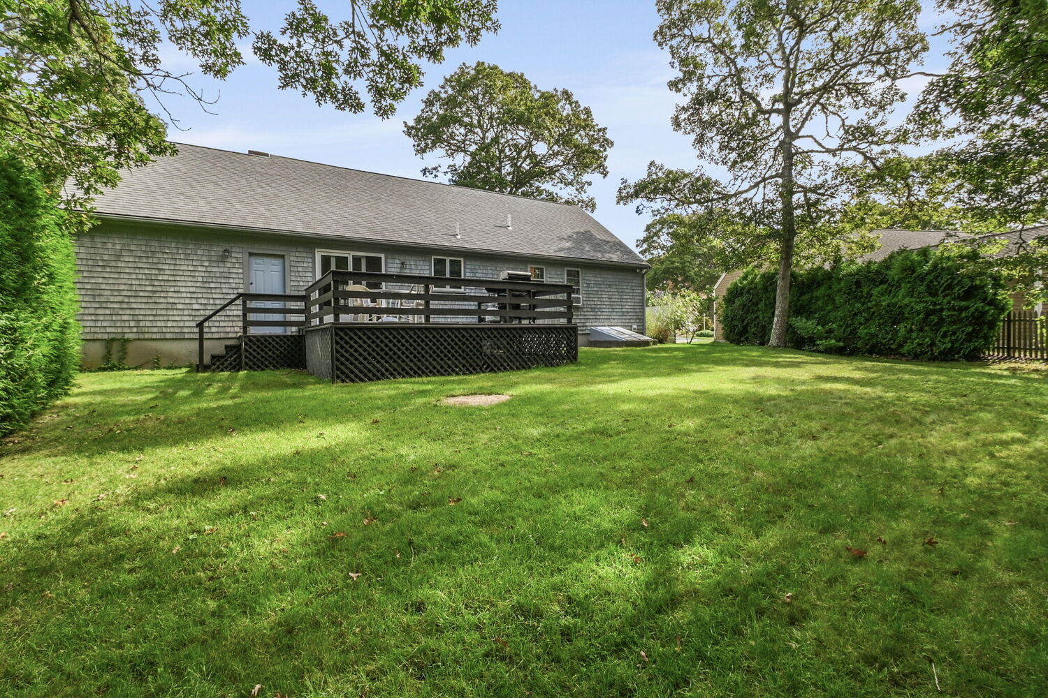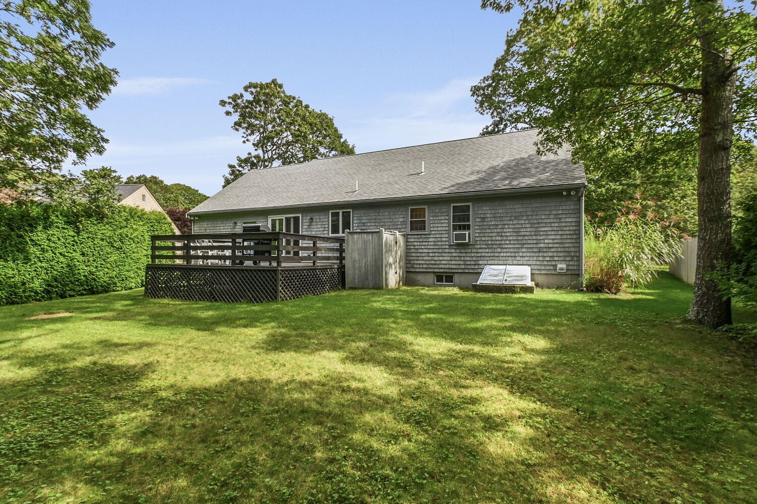 Welcome to Whidah Drive, where you can enjoy the convenience of a central location close to shopping and the tranquility of a quiet, private neighborhood. This charming home, built in 1986 and lovingly maintained by the same family since then, features three bedrooms and two full bathrooms. The kitchen, living, and dining rooms boast vaulted ceilings, creating an open, airy, and bright space. Downstairs, you'll find additional living space with a partially finished basement, offering ample storage and utility space as well. The home features a Humidex humidity control and ventilation system and has conveniently already been connected to town sewer. Step outside to enjoy the private, well-established yard from the back deck complete with irrigation system. After a day at the beach, rinse off in the backyard outdoor shower. This home is ready for your updates and could serve as the perfect Cape house or year-round home.