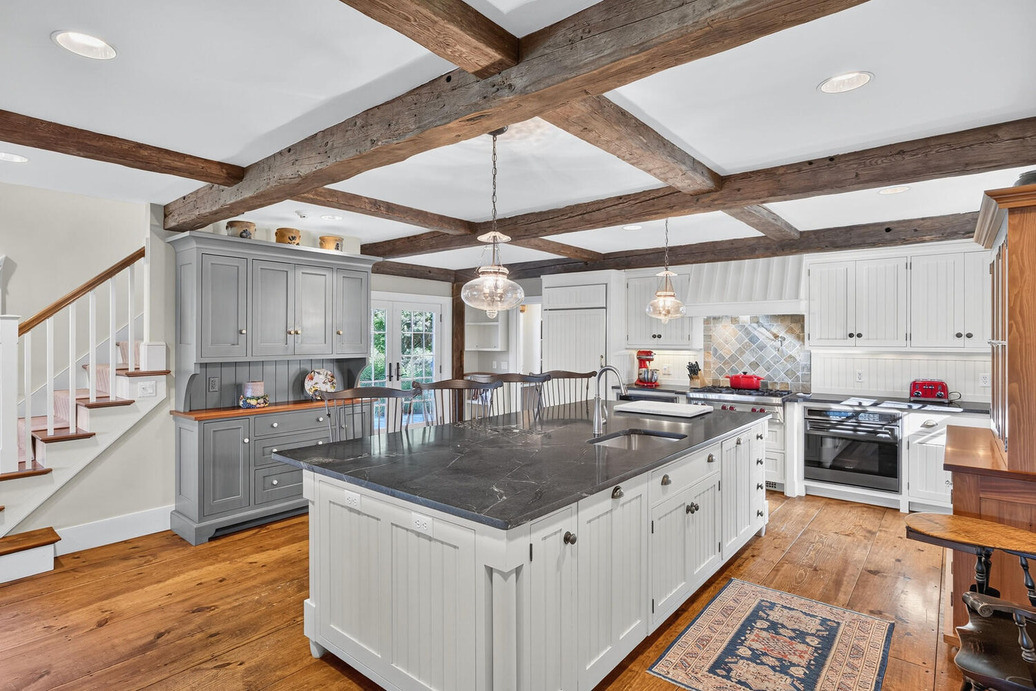 Kitchen Features | 0X0 Countertop(s): Other Flooring: Wood Stove(s): Gas Kitchen Beamed Ceilings Kitchen Island |
