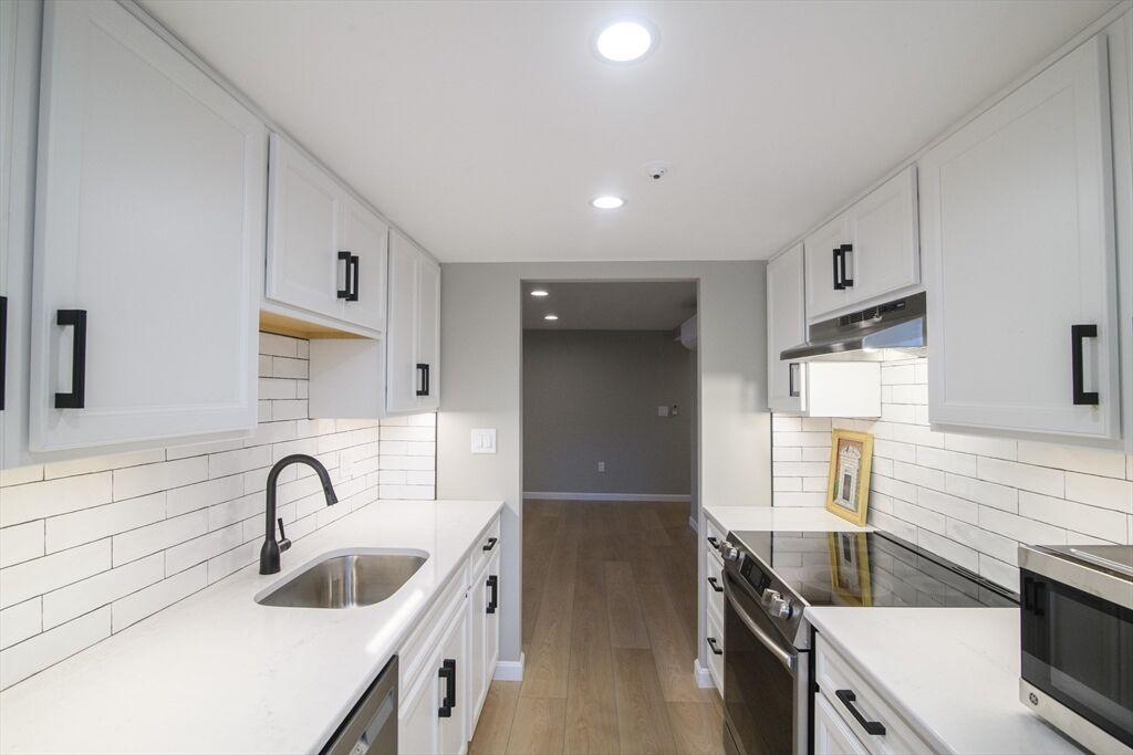 Beautifully renovated corner unit! This sun-filled first-floor 2BR/2BA condo in Melrose offers the perfect blend of style, comfort, and convenience. The spacious living room provides flexibility create an open-concept feel or use the area off the kitchen as a dining space. The updated kitchen features quartz countertops, stainless steel appliances, recessed lighting, and in-unit laundry. The bright primary bedroom includes a large walk-in closet and marble vanity bath, while the second bedroom also features a walk-in closet and marble vanity bath. Building includes an elevator, plus two deeded parking spaces one private garage and one outdoor. Enjoy resort-style amenities: indoor/outdoor pools, tennis courts, grilling areas, and beautifully landscaped grounds. Nearby to Whole Foods, shops, restaurants, coffee, and commuter rail.Information deemed reliable but not guaranteed. Buyers and agents to perform their own due diligence.