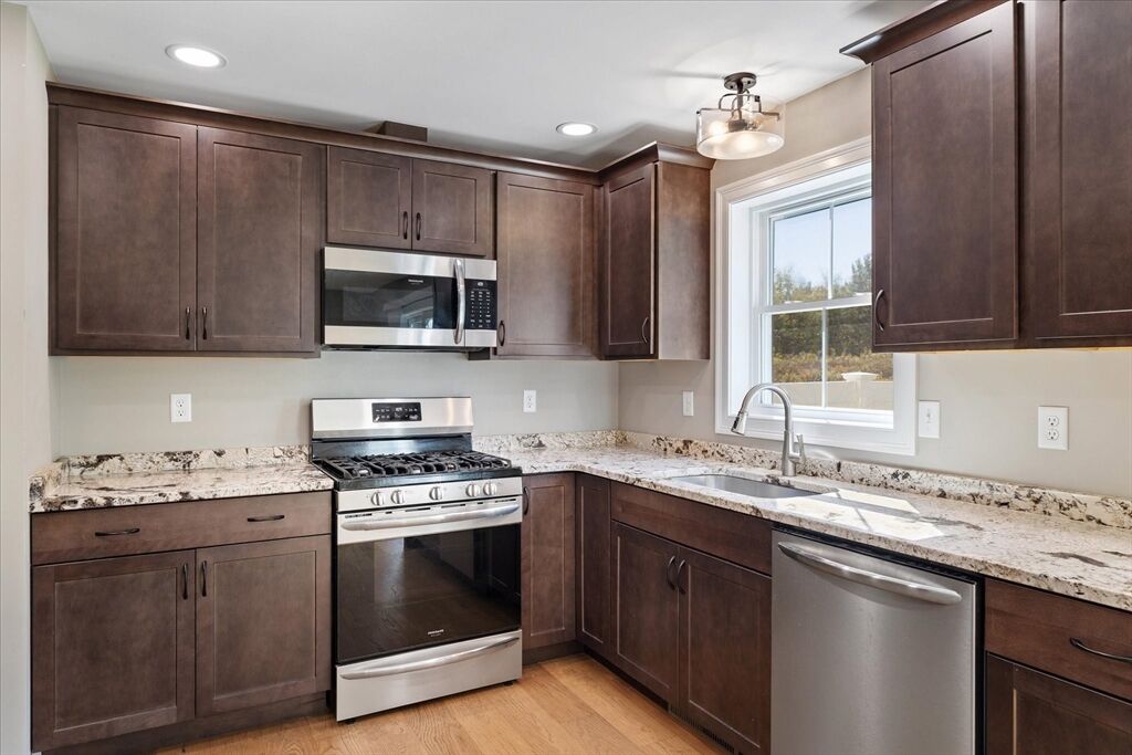 Four full bedrooms AND no condo fees? Yes please! This attached Colonial delivers on everything you’ve been searching for, offering over 1,700 sq. ft. of well-designed living space. The 1st floor boasts hardwood floors, a spacious living room perfect for gathering, plus a convenient half bath & laundry. The open kitchen/dining area shines with granite counters, stainless appliances & a slider leading out to your private patio & exclusive enjoyment of more than an acre of land. Upstairs, you’ll find 4 generously sized bedrooms, including a beautiful primary suite complete with its own bath & walk-in closet. One of the bedrooms features vaulted ceilings for extra character, and there’s an additional full bath to serve the 2nd level. An attached one-car garage, central air & a full basement ready for finishing round out the package. All of this is set in a prime commuter-friendly location with easy highway access - giving you space, privacy, and convenience all in one rare find!