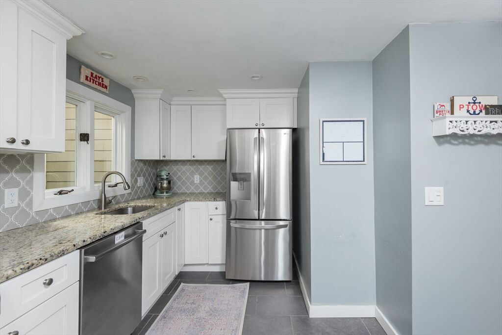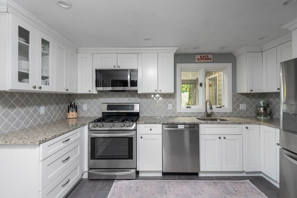 **All Offers due by Monday 9/27 by 5:00pm**Amazing Opportunity in the Highly Desirable Homestead Area! Step into the sun-drenched living room featuring a large bow window, flowing seamlessly into the open dining and kitchen area complete with stainless steel appliances. The first-floor primary bedroom offers a private retreat with access to a 3-season screened porch—perfect for enjoying the changing New England seasons. The main bath is designed with accessibility in mind, showcasing a spacious walk-in shower and convenient washer/dryer setup. Upstairs, you’ll find two bedrooms with hardwood floors, built-in storage, and a half bath. The lower level expands your living space with a bonus family room plus a utility/workshop area. Outside, enjoy a fully fenced backyard with a patio and a generously sized storage shed. Don’t miss your chance to call this Homestead gem your new home!