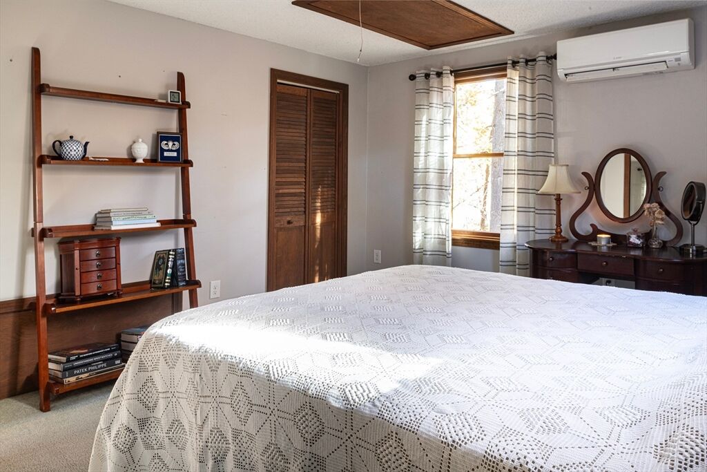 Beautifully sited among the trees on nearly an acre, this charming 3-bedroom Cape offers warmth, character, and comfort in a serene setting. Inside, natural wood beams, a cozy stone fireplace, and rich wood finishes create a welcoming New England feel. The dining room with its beamed ceiling and vaulted spaces invites gatherings, while the updated kitchen features newer appliances and plenty of natural light. Practical upgrades include a new water system, new shed, and a heated garage—plus the home is wired for a generator, ensuring peace of mind year-round. Spacious 3-car garage with beautiful finished space above, ideal for home office, game room, or team hangout! Surrounded by nature yet convenient to local treasures, this property blends rustic beauty with everyday convenience. Come experience the tranquility, charm, and potential of this well-loved home!