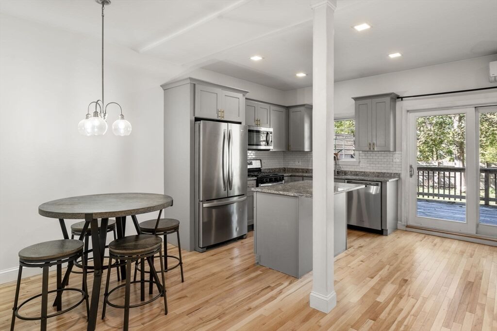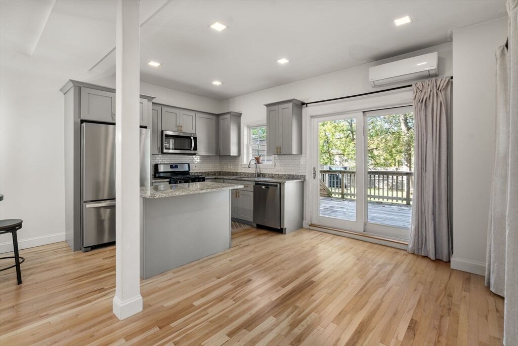 Welcome home to this thoughtfully updated 2-bedroom, 1.5-bath condo. With hardwood flooring throughout, the open-concept main level features a bright kitchen with stainless steel appliances, a spacious living area with a slider leading to your private deck, and a convenient half bath. Upstairs, you’ll find two generously sized bedrooms and a full bath. Fully remodeled in 2018 and well cared for since, this home also offers ductless mini splits (condenser replaced in 2025) and the convenience of in-unit laundry. Step outside to your deck - ideal for morning coffee or a quiet evening. This property also includes two off-street parking spaces. Located just moments from downtown Amesbury, you’ll enjoy easy access to restaurants, shops, and parks. This condo combines charm, comfort, and a fantastic location. Showings to start at Open House - Saturday, 10/11 @ 11am.