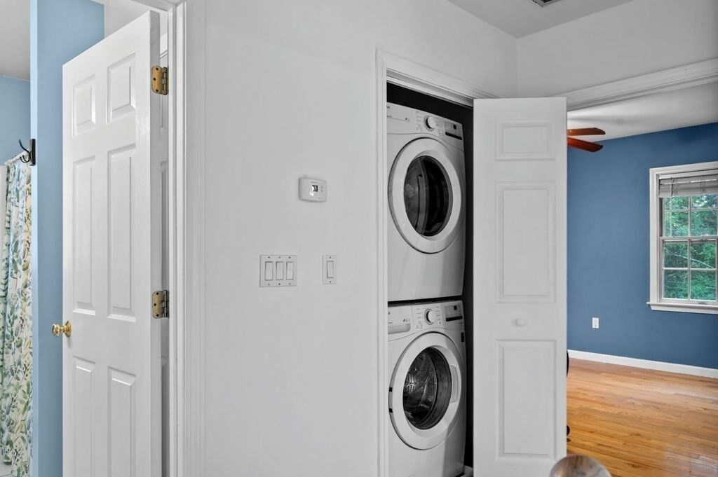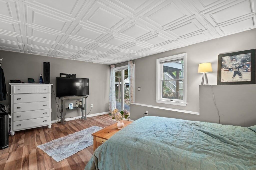 Welcome home to this charming, meticulously maintained home at end of quiet cul-de-sac. This oasis offers tranquil, private living close to town, beaches, highways. Refreshed interior paint w crisp, clean feel is ready for you to move in. French doors open to 1st flr office, offering separate workspace. Comfortable living area w woodstove adds rustic, cozy warmth & slider access to deck. Timeless kitchen w eat-in option & sliders to deck. Retreat to primary bdrm featuring private en suite w luxurious spa tub & large walk-in closet. Finished basement features full kitchen, bath, & exterior access. Separate heated building w skylights presents blank slate; originally designed for hot tub/sauna, perfect for home office, gym, playroom, hobby space. Attached two-car garage provides convenient parking, additional storage. Recently resealed driveway, prof lansdscaping & fenced yard. Gas heat, central air. Don’t miss opportunity to own this perfect blend of comfort, convenience, & versatility!