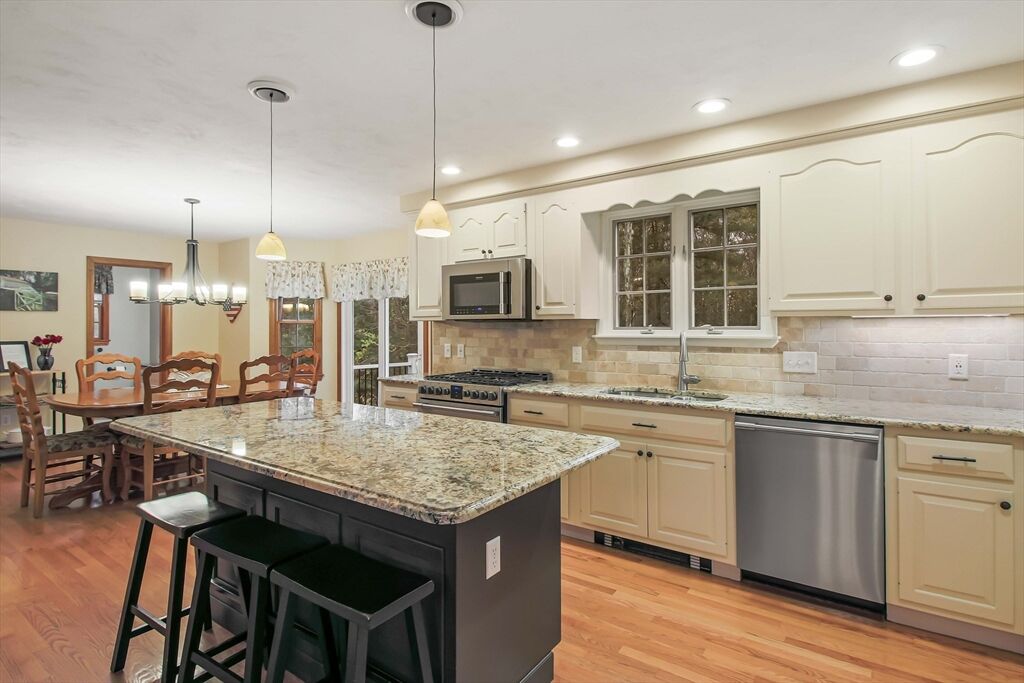 Welcome to this almost 3000 SF beautifully maintained 4-bed, 2.5-bath Colonial in one of Sutton’s most sought-after neighborhoods. Sun-filled rooms, gleaming hardwoods, and an open flow make this home perfect for easy living. The updated kitchen offers granite counters, stainless appliances, and a large island! Step up to the vaulted family room with hardwoods and fireplace! A separate dining room and living room/den/office, half bath, pantry and laundry complete the 1st floor. Upstairs, the primary suite features cathedral ceilings, walk-in closet, and private bath w/granite counter. Three additional bedrooms and a full bath. The finished lower level adds flexible space for a gym, office, or playroom. Enjoy outdoor living on the composite deck overlooking a private, wooded backyard w/ a custom shed. Set on a quiet street yet minutes to highways, schools, and shopping. Move-in ready & meticulously cared for—this home blends comfort, style, and convenience! OPEN HOUSE 11/23 1:30-3