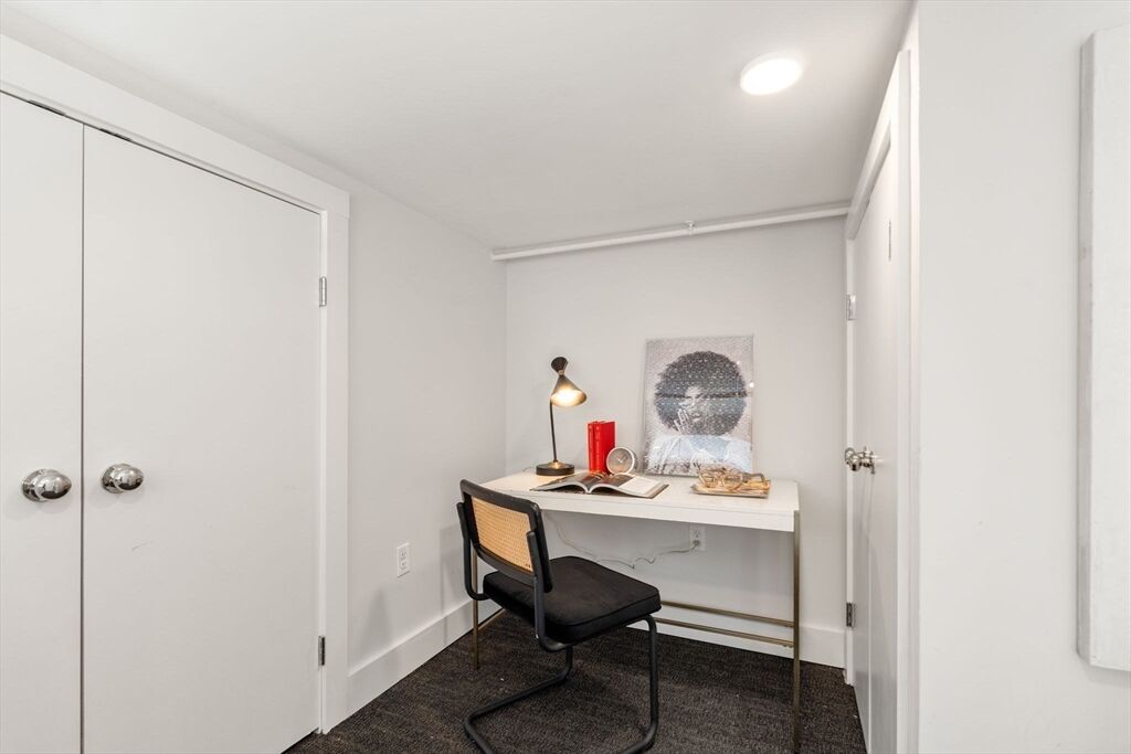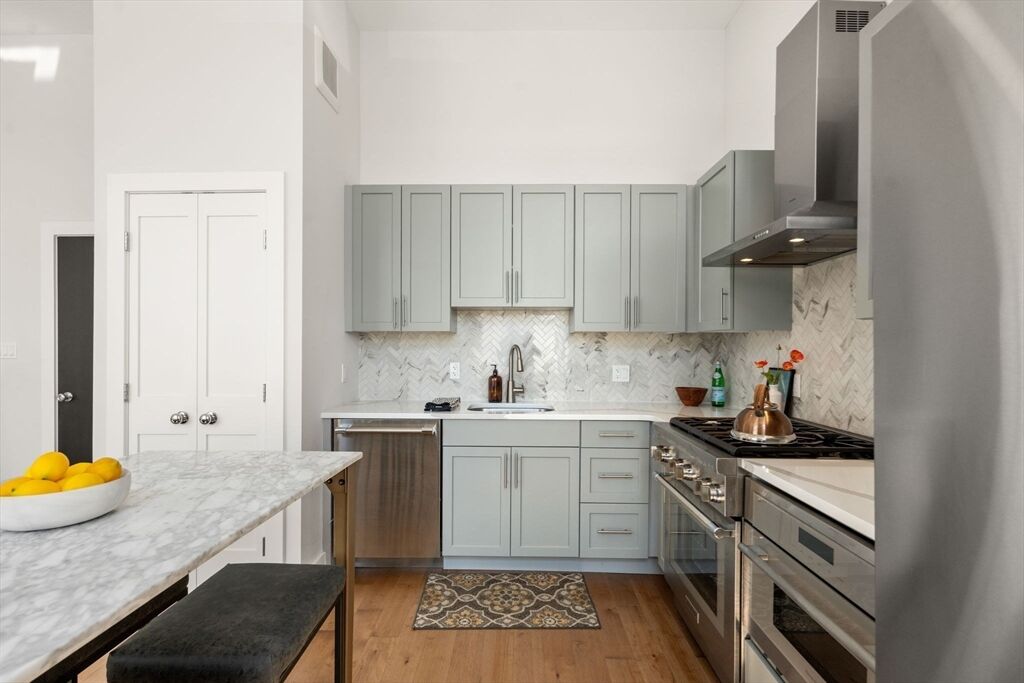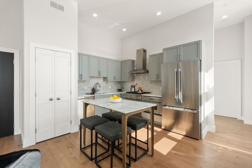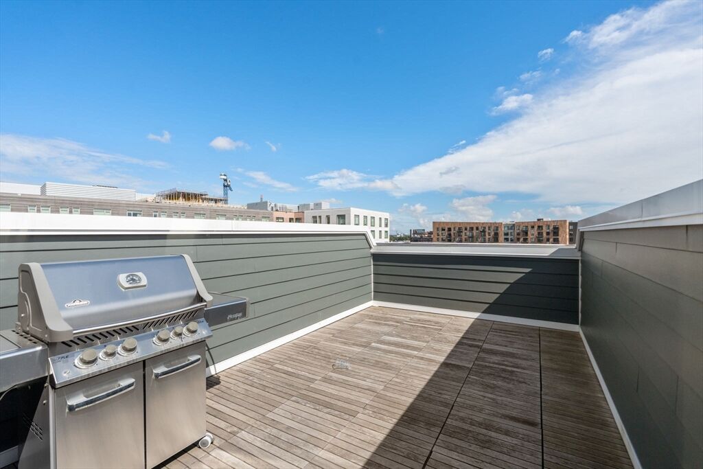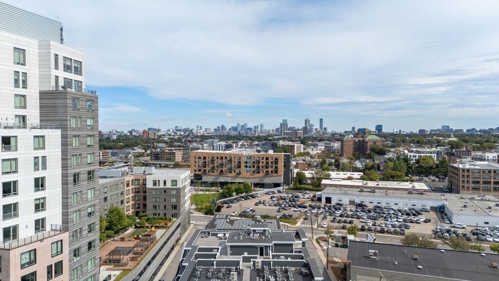 Soaring ceiling heights and a bright, open floor plan define this stunning 2 bed, 2 bath + office home in a modern 5-year-old building. Enjoy incredible amenities including a fitness center, bike storage, a dog washing station, a shared roof deck with city views, and a stylish common room. This sun-splashed unit features southern-facing windows throughout, PRIVATE roof deck W/ gas Grill, and two garage parking spaces. The versatile loft space off the primary bedroom is perfect for a home office or reading nook. Located in Brighton’s vibrant New Balance neighborhood, you'll be steps from top restaurants, live music venues, green spaces, the commuter rail, and world-class sports facilities used by the Bruins and Celtics.