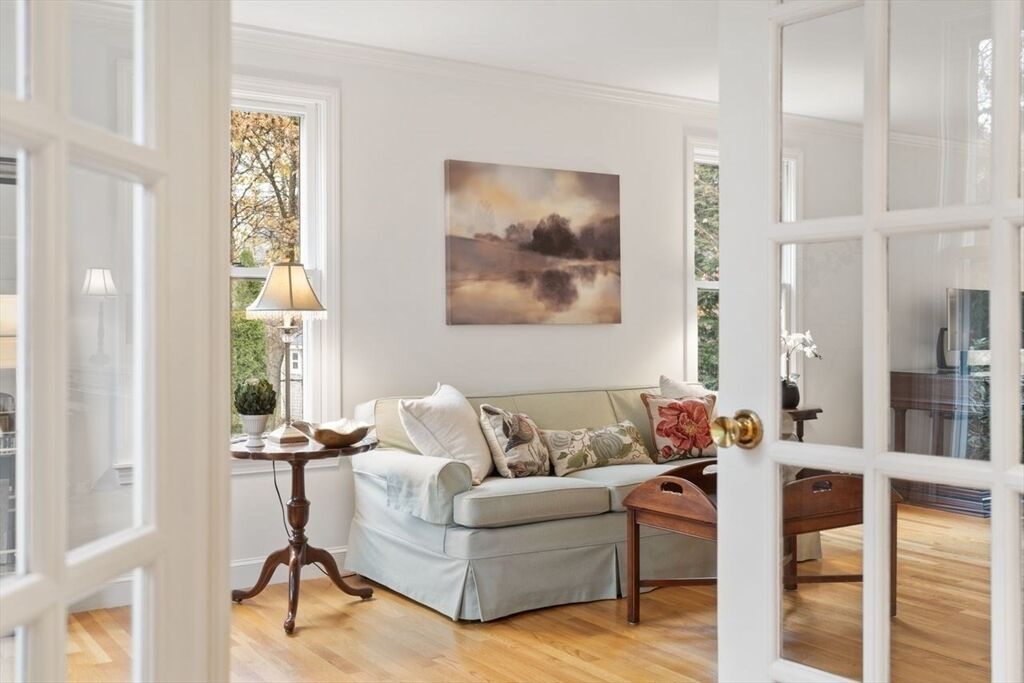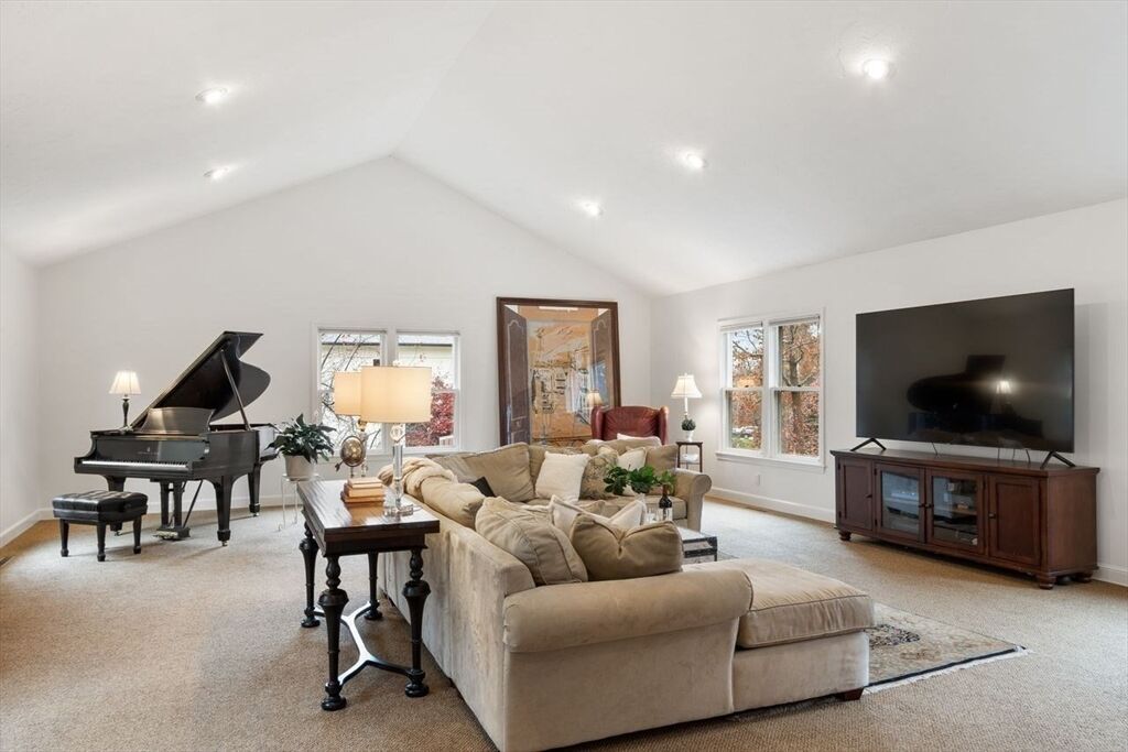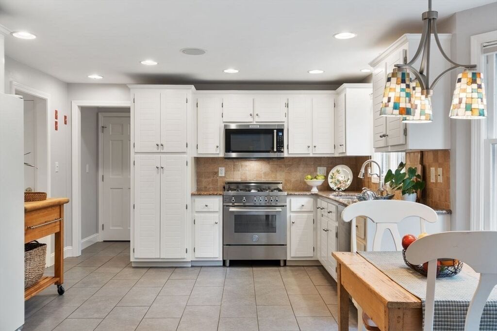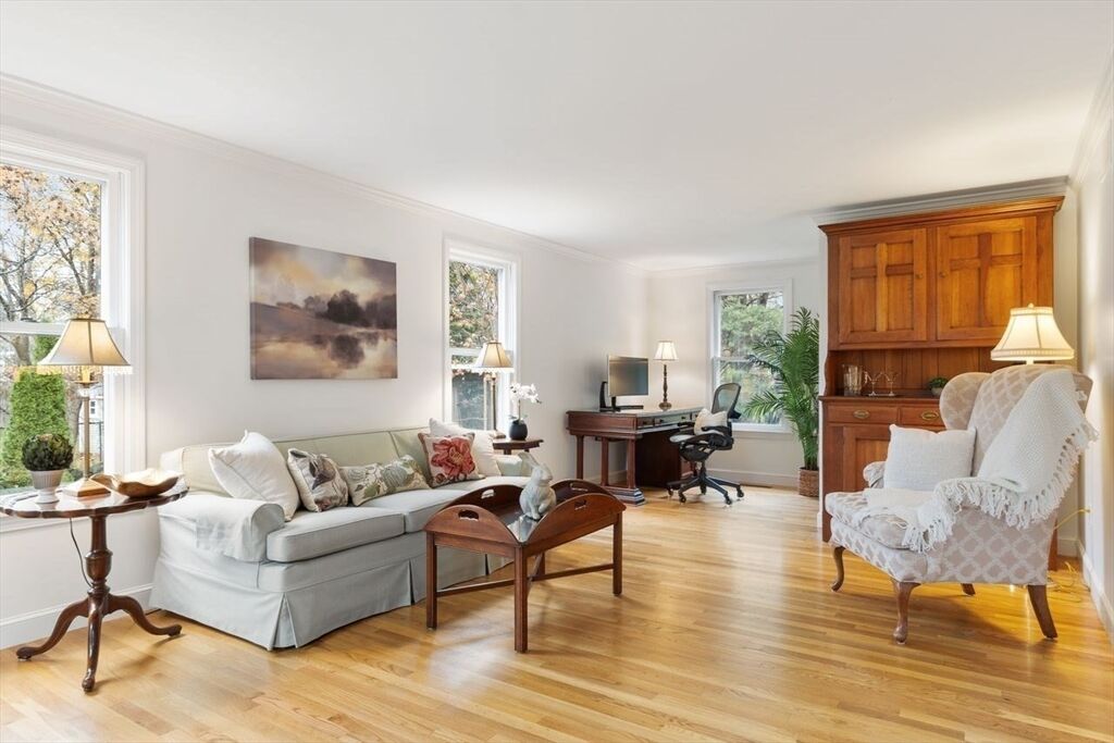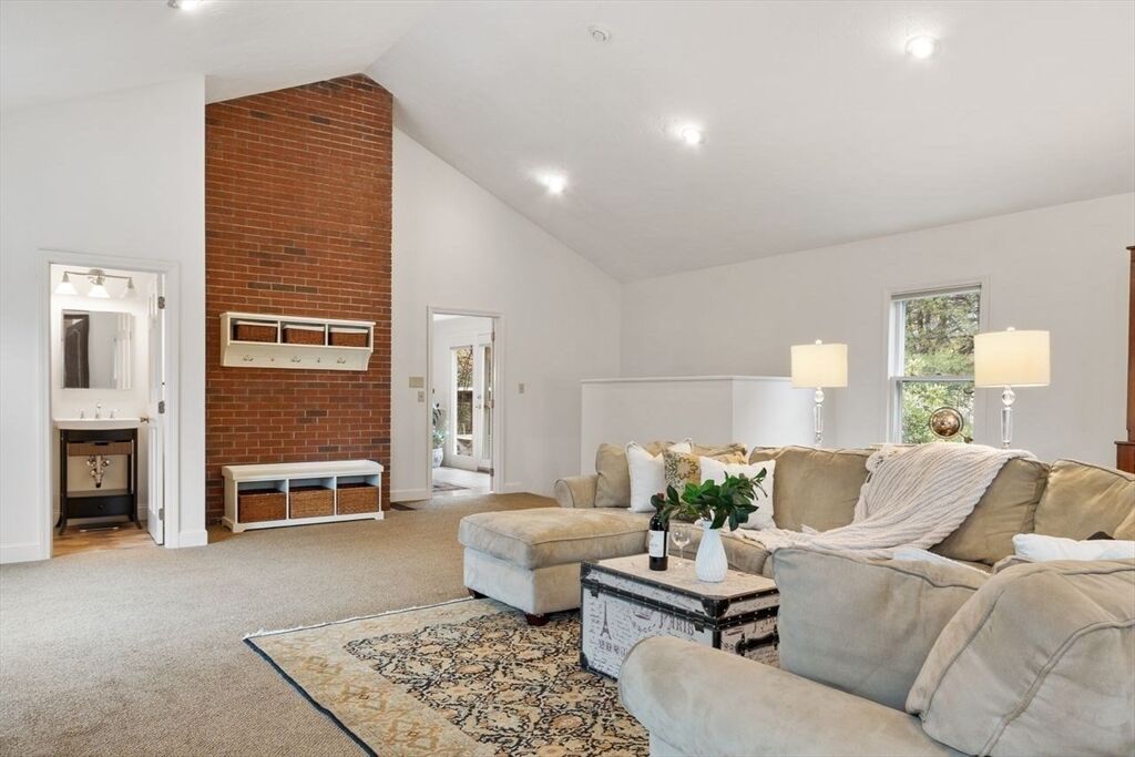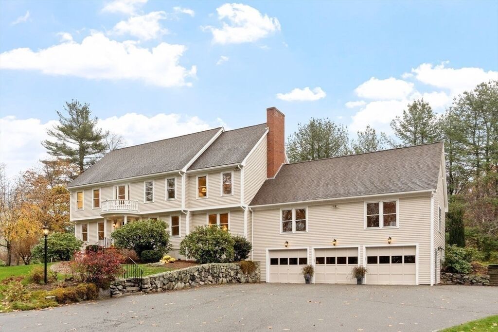 This stately center-entrance Colonial in sought-after South Andover offers convenient access to Pike School, Phillips Academy and downtown. The bright two-story foyer opens to a formal living room with crown molding, opposite a den/library with built-ins — ideal for a home office. The sunny eat-in kitchen features granite counters, neutral cabinetry, a Bertazzoni stainless range/oven and gray ceramic tile flooring. A dining room with fireplace opens to the patio for seamless entertaining. An enormous family room over the 3-car garage has vaulted ceilings and a half bath, offering great space for gatherings or a future home theater. Upstairs are four bedrooms, including a spacious primary suite with fireplace, bay window sitting area, double closets and en-suite bath. A walk-up attic provides excellent storage and expansion potential with heating capacity in place. Landscaped grounds include a private patio, well-built chicken coop and raised bed garden for fresh eggs and produce.