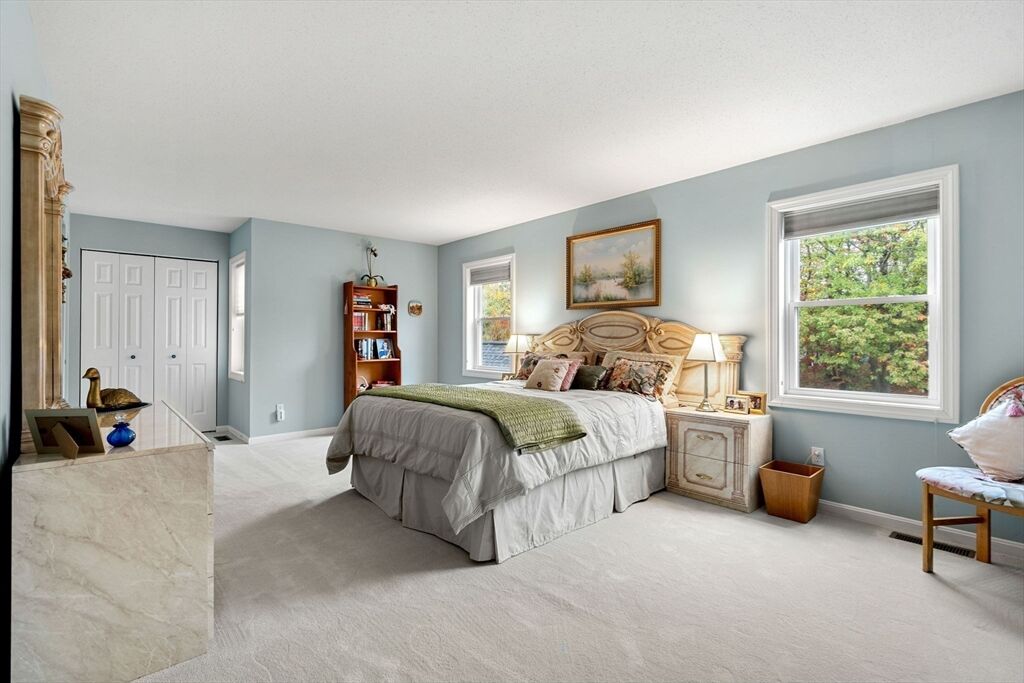 Gorgeous end-unit townhome with a first-floor primary suite and attached garage in sought-after Maple Ridge! Surrounded by trees glowing with autumn beauty, this home blends luxury, comfort, and space. Enjoy easy one-floor living with plenty of room for family and friends. The vaulted living room and dining room are perfect for entertaining and celebrating the holidays. The primary suite offers a full bath with double sinks, vaulted ceilings, custom walk-in closets and wooded views. A cozy family room with a double-sided gas fireplace and direct access to the back deck. Updated kitchen and baths, plus an open loft with built-ins ideal for an office. The vaulted top floor makes a wonderful guest suite or extra workspace. Bright walk-out lower level with backyard access and bonus space ready for finishing. A short drive to Burlington’s best restaurants. Complex-wide updates in 2018 include roofs, siding, windows, and doors. Tremendous space, luxury finishes, and carefree living await!
